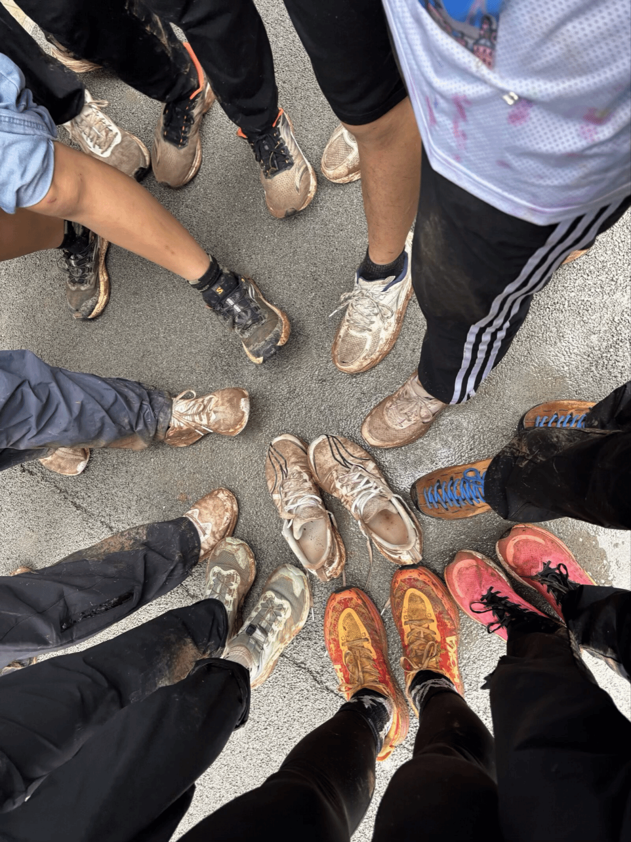 赛后,与其他高校成员交流分享比赛经验。我校定向越野队队员谢娅踩着打滑的鞋底说道:“全身都是泥巴,一直屁降,有路就跑,无路就跳,就是没有想过弃赛。”队员梁晓感叹:“有好几个点中间都是大跨越,间隔很远,好不容易只剩下两个点了,100号点和终点,结果它又是一个很大的长坡,虽然后面体力快跟不上了,但我还是咬牙拼命摆臂跑上来了。”队员们回来时,身上湿透的衣服,鞋子沾满的泥巴、脸上的汗水都是他们在赛场上拼搏的痕迹,是对他们努力奋斗的见证。