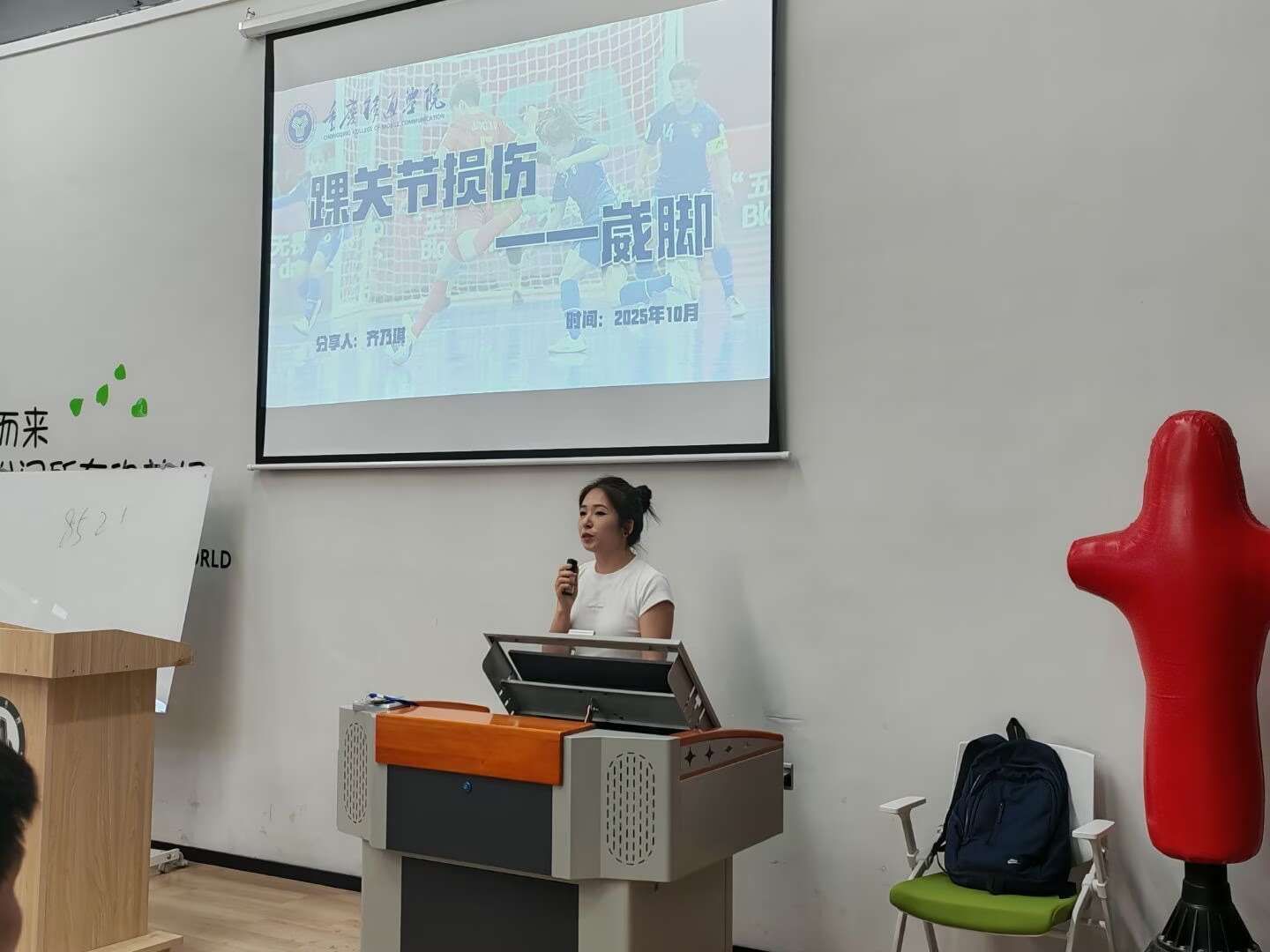 为切实提升学生运动安全意识与自我防护能力,破解日常运动中“不知如何防、受伤不会护”的痛点,近日,竞技体育中心康复教练齐乃琪受邀走进大数据学院,以“踝关节损伤预防与康复”为主题开展专题科普讲座,为学生们带来了一堂兼具专业性与实用性的运动健康必修课。