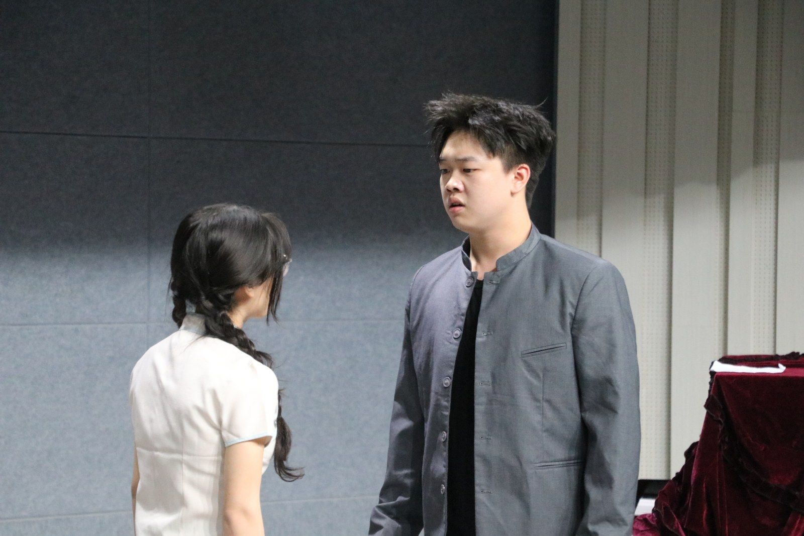 《红豆》这幕戏剧具有逆流而上的剧情张力,给人以揪心动情的感受。它通过一幕幕的场景来推进故事情节的发展,这样的构架使得整体的轮廓非常完整,每一幕之间有边界感也有联动感,将这对恋人相爱,争吵,沉默最后分别的情绪张弛有度的表现出来,随着剧情的发展,他们从刚开始两人意见的分歧,再意识到问题并没有想象中那么迎刃而解,最后上升到理想抱负政治追求的高度,才明白此时的两人价值观已经背道而驰了,他们都试图挽救过,可是没有办法说服对方,也不想为了爱情而改变自己坚持一生的信念,因此这样的悲剧从一开始便已经注定。剧情的节奏是标准的三段式节奏,前期一点一滴的在积累,走进两人之间的内心独白,也给了观众一个前情提要式的缓冲时间,后面推向高潮后,两人情绪积累到一个高点,开始疯狂输出,使得观众的精力也到达这个点身临其境的为这对恋人感到愤愤,而过后回归平静,就像是海啸冲击以后的风平浪静,在表面沉默着,其实双方都在心底暗潮涌动着。两人都有自己的思想,并且外露得非常明显,这也带动着观众的思考:站在两人之间,通过上帝视角回到那个战争纷飞的年代,如果置身其中,我会给出怎样的答案?