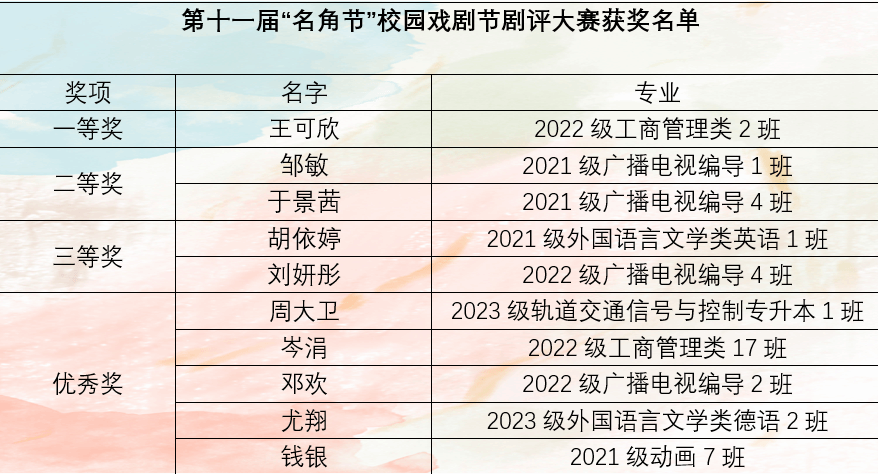 文字是生命的留声机,记录着感知的投影,印刻着生命旅途的轨迹。接下来让我们一起回味戏剧的狂欢,共赏获奖同学的文采吧!