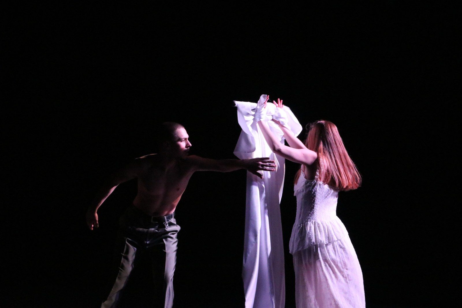 由俄罗斯国立舞台艺术学院表演的戏剧《Orpheus and Eurydice》在4月的一个晚上于重庆移通学院的缤果大剧院中诚挚地打动了我本以被尘世纷扰的内心。这部以希腊神话中一段感天动地的爱情故事为蓝本的戏剧,在全程无台词、无道具,舞台自始至终仅有的男女主角的前提下,依然能靠着直白丰富的剧情构思、演员生动投入的表演、以及美轮美奂的舞台设置,让作为现代人的我们仍旧能为千百年前的希腊神话所动容。这不仅得益于主创团队在古今元素上的潜心搭配,也得益于演员对角色独到的理解,并靠着不同于商业戏剧的方式流露出来了。
