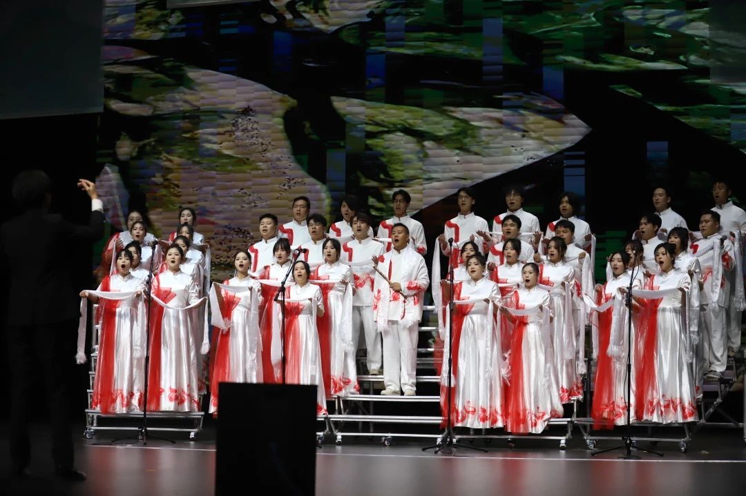 Obsessed合唱团带来《敕勒歌》,这首歌焠取了草原情怀和基因的精髓,有辽远、忧伤、悲天闵人而又雄健豪迈的气质,“天苍苍,野茫茫,风吹草低见牛羊”,仿若展开一幅跨越时间的画卷。在 “时间的诗意” 主题下,它展现出岁月沉淀中自然的永恒之美。敕勒川的风光经历史长河洗礼,依旧震撼人心,这是时间赋予自然的诗意馈赠。从古老的游牧时代传唱至今,它承载着先辈对这片土地的热爱与敬畏,那质朴而豪迈的情感,在时间的流转里成为不朽的诗意篇章,让我们于歌声中领略到时间深处自然与人文交织的独特魅力,赢得了现场观众的阵阵掌声。
