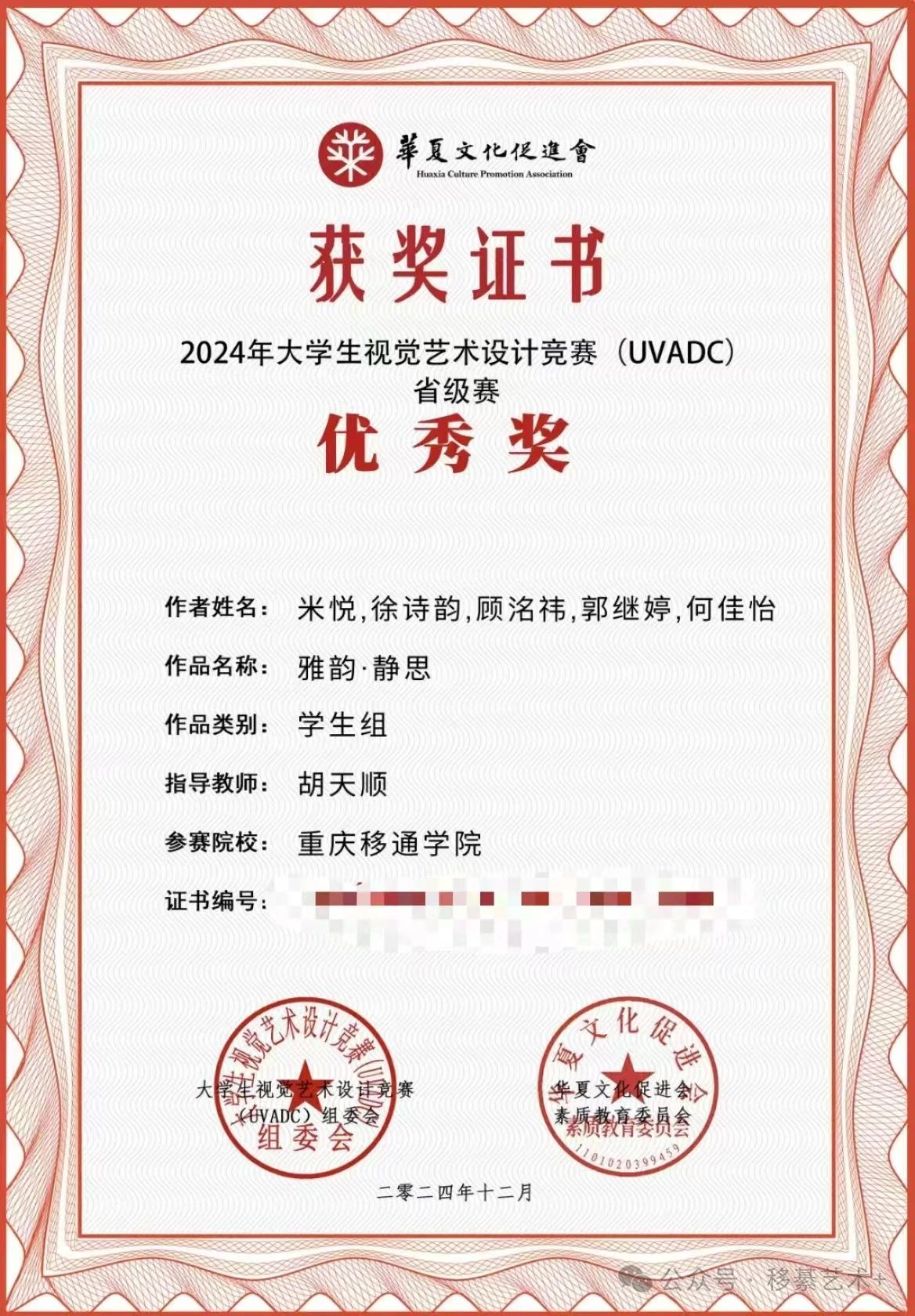这项由华夏文化促进会素质教育委员会、中国国际科技促进会指导的国家级赛事,本次赛事吸引了全国1891所高校参与,我校学子投递的4部作品从298763件参赛作品中脱颖而出,展现出属于非艺术院校学生的专业实力,期待他们未来在艺术道路上继续发光发热。