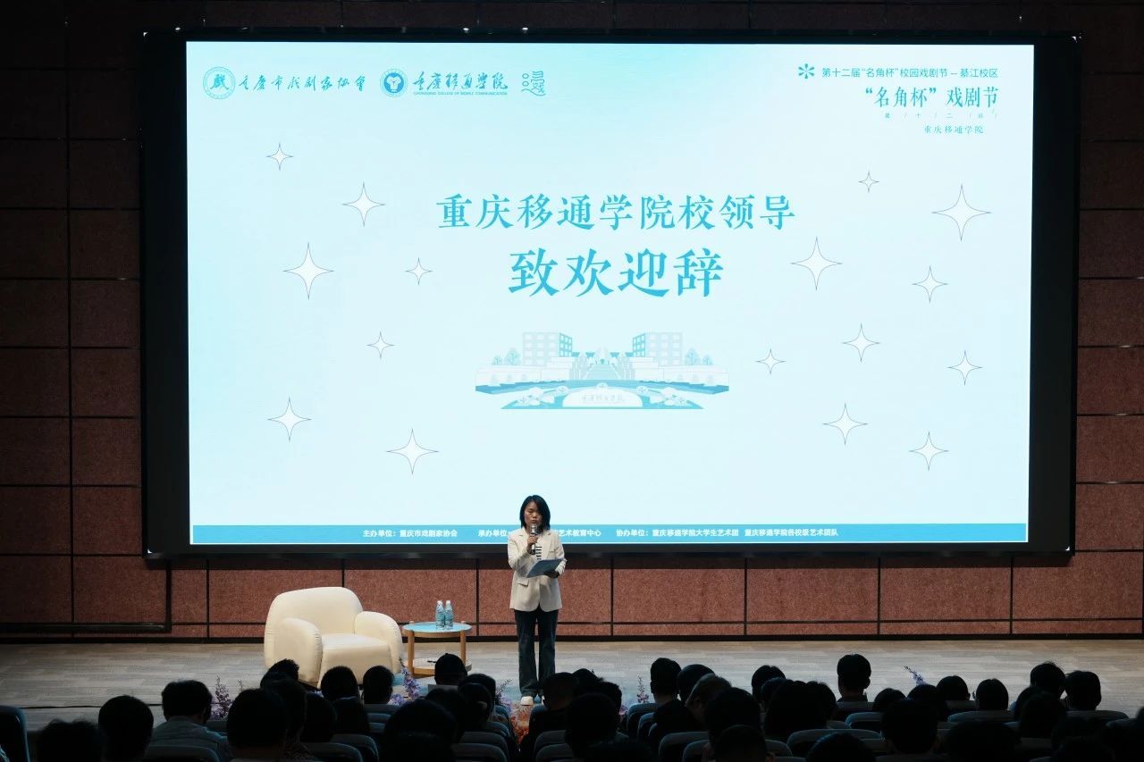 活动伊始,重庆移通学院校长助理谢银平发表欢迎辞。她从学校“四位一体双院制+特色课程”育人模式切入,强调艺术教育在培养学生创造力、团队协作力与社会责任感中的核心作用。“名角杯”戏剧节连续十二年的坚守,学校每年投入专项经费支持戏剧创作,成立音乐剧中心、音乐剧产业学院等专业学生团队,孵化出如《毕业生》《酒瓮》《继人类》等原创精品剧目,展现出重庆移通学院在高校戏剧创作工作的深刻实践。