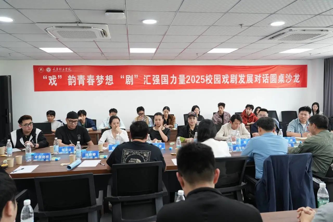 14:30,‘戏’韵青春 梦想‘剧’汇强国力量——重庆校园戏剧发展对话”圆桌沙龙在綦艺大剧院403共鸣·会议室举行。会议由重庆市剧协秘书长刘明惠主持,着重围绕“如何整合资源携手共创高校戏剧项目”进行了热烈的讨论交流,各专家从自身工作领域出发,针对性的解答在交流中提出的实际问题,一起共建良好的重庆市高校戏剧发展生态。