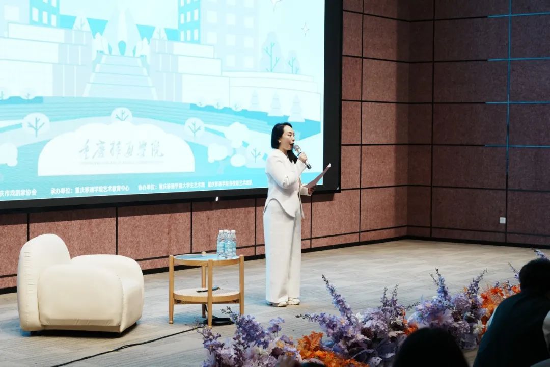 中国剧协会员胡音在《从跨界方法论到未来的戏剧》讲座中,她认为当代表演艺术体系以重庆为核心的程成渝地区的发展,结合重庆“赛博城市”的热度,阐释“科技+戏剧”“非遗+戏剧”的融合创新。“未来的戏剧教育不应局限于舞台,而应打破学科边界,用VR技术重现历史场景,用方言说唱活化传统戏曲,让青年成为跨媒介叙事的先锋。”