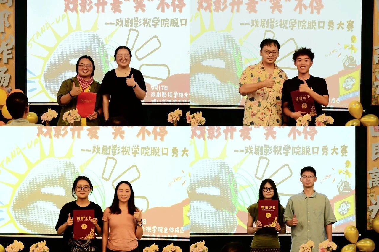 最终由现场观众呼声和评委老师投票得出,张瀚同学获得一等奖及口条nice奖、冯丽颖同学获得二等奖及“效果核弹”爆梗奖、余城佳同学获得三等奖及“戏精本精”炸裂奖、邱思宇同学获得优秀奖。最后,林西康老师对本次比赛进行了总结,“今年选手表现更成熟,作品更鲜活。希望同学们保持幽默观察与真诚表达,期待未来更多精彩故事!”