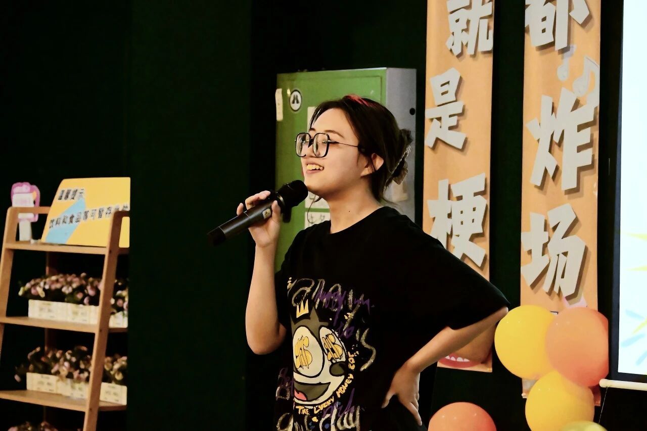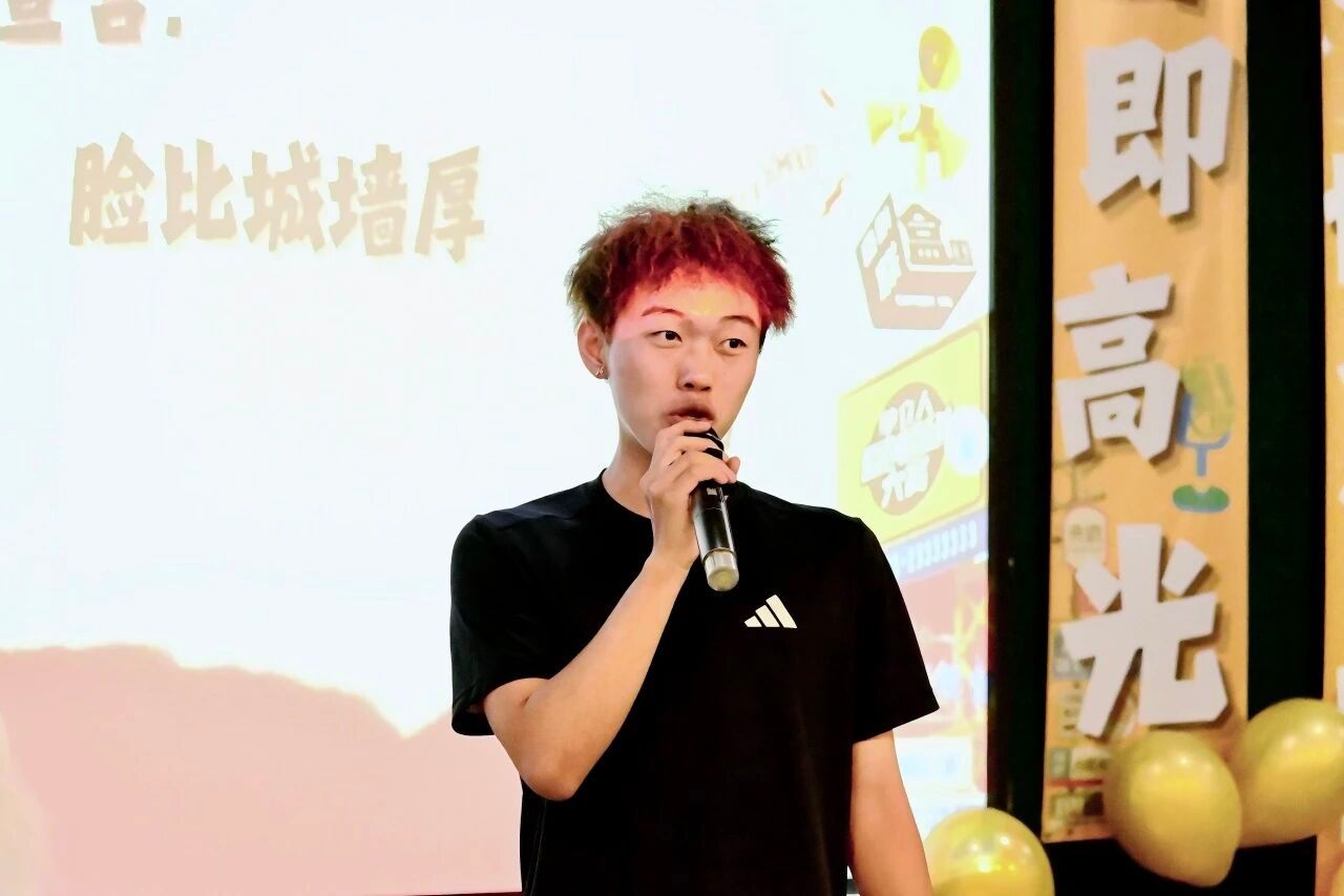 以《校园生存录》为题,邱思宇同学用脱口秀表演的形式,把开学以来亲身经历的各类趣事展现给了在场众人。