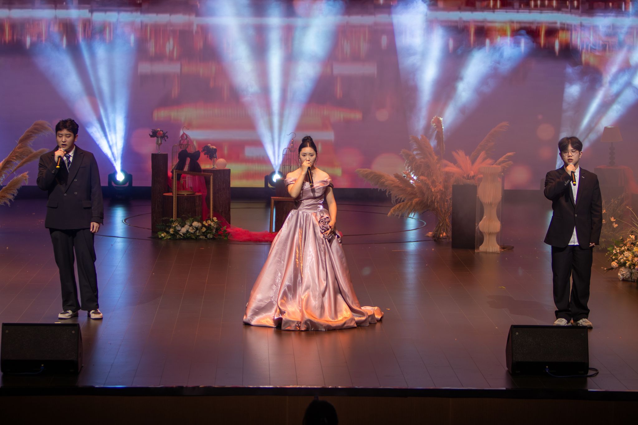 本次大赛特别邀请2024年校级歌手大赛冠军胡晓龙登台献唱,一首《没离开过》其极具感染力的专业演绎瞬间引爆全场,成功将赛事气氛推向最高潮,为整场亮眼句点。
