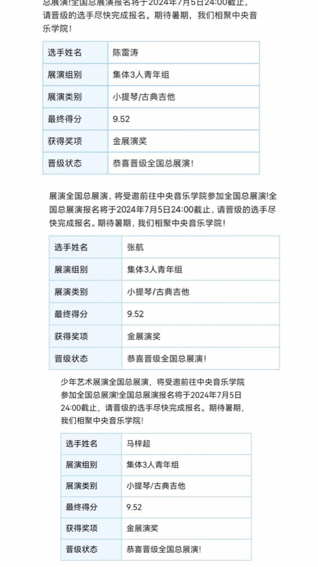 6月9日,我校校乐团西洋室内乐团成员陈雷涛、马梓超和校乐团现代乐团成员张航,三位同学斩获三项金奖