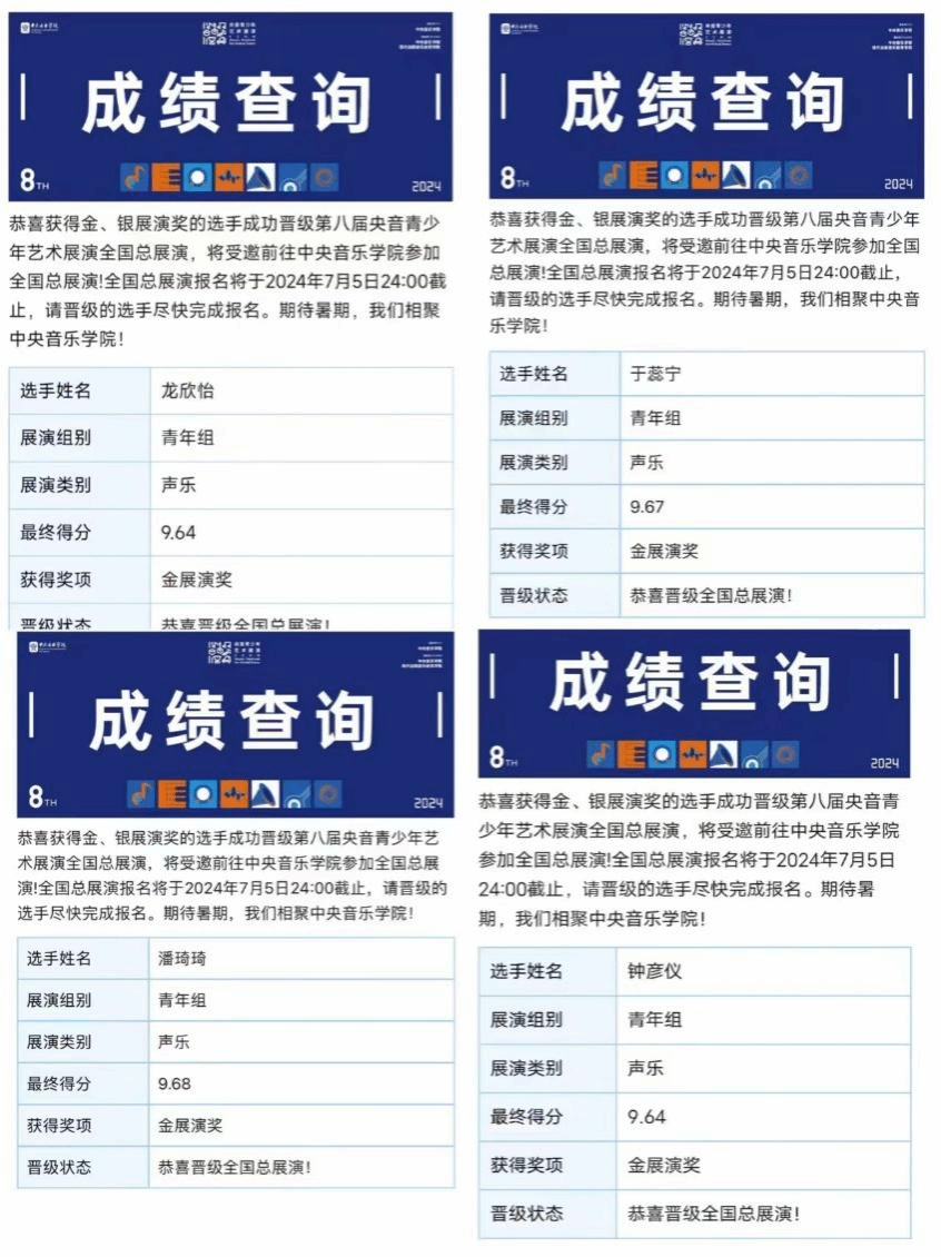 在声乐比赛专场中,我校的钟彦仪、潘琦琦、龙欣怡、于蕊宁,四位同学斩获四项金奖
