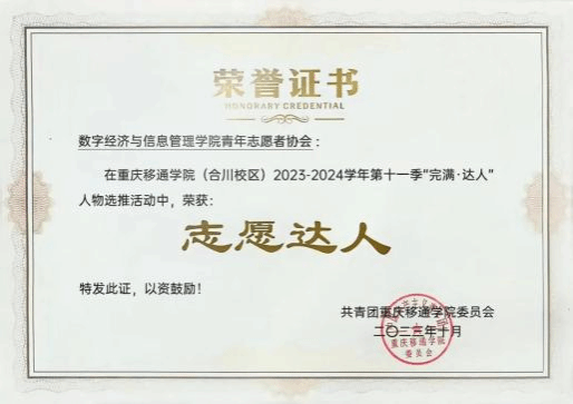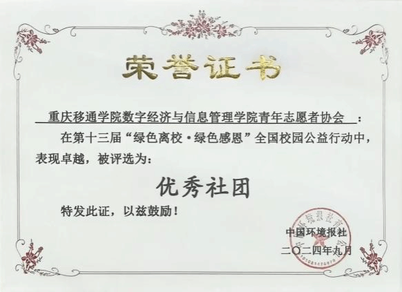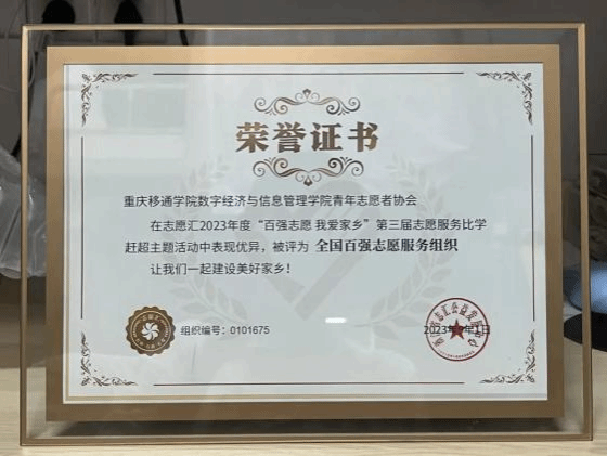 在过去的一年中,数信青协凭借出色的志愿服务表现,荣获第十一届“志愿达人”“全国百强志愿服务组织”及“金辉组织”等荣誉。本学年伊始,数信青协再传佳音,不仅荣获第十三届“绿色离校·绿色感恩”全国校园公益行动优秀社团荣誉称号,更在激烈的竞争中脱颖而出,成功入选“榜样100”全国大学生优秀社团及团队。