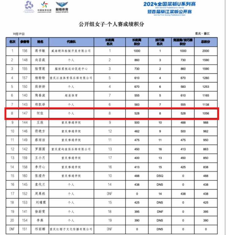 2024年10月19日,重庆市綦江区虹桥公园开展2024全国桨板U系列赛重庆綦江站暨首届綦江桨板公开赛,本次比赛设有青少年U9、U12、U15、U18四个组别,以及大师组、公开组,共有海南、贵州、重庆等五六个地区的近300名运动员参赛。
