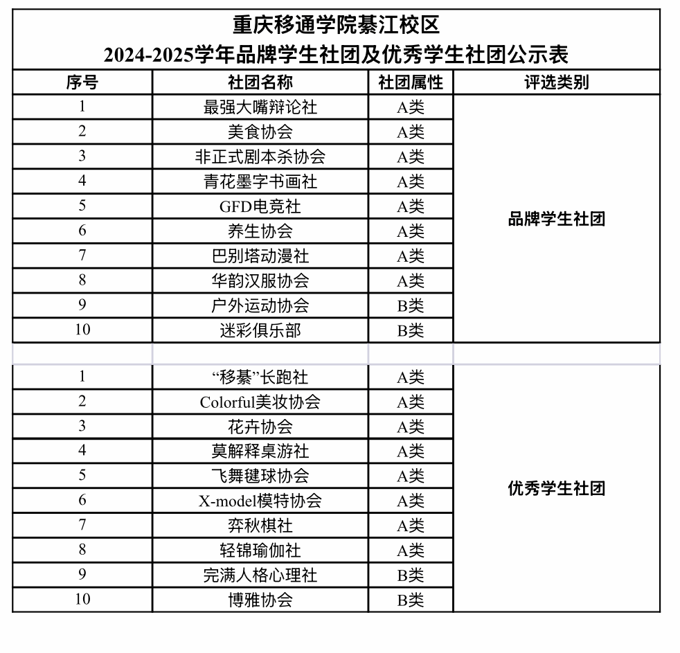 现对评选出来的品牌学生社团、优秀学生社团进行公示,公示期6月13日-6月17日,公示期内如有异议,可以电话、邮件等方式实名进行反映。