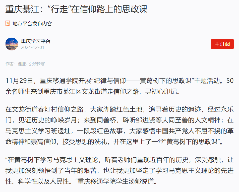 学习强国:重庆綦江:“行走”在信仰路上的思政课