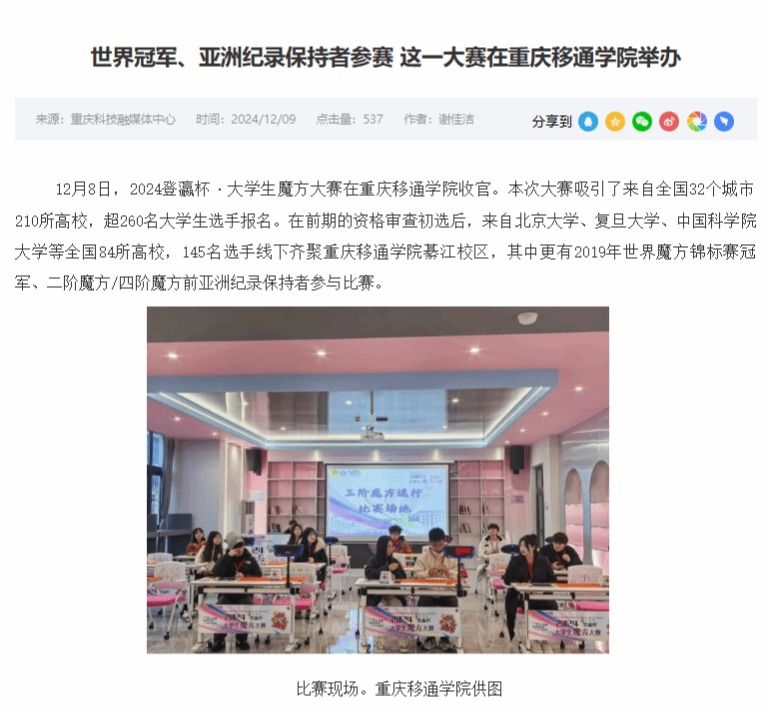 学习强国:2024登瀛杯·大学生魔方大赛在重庆移通学院完美收官!