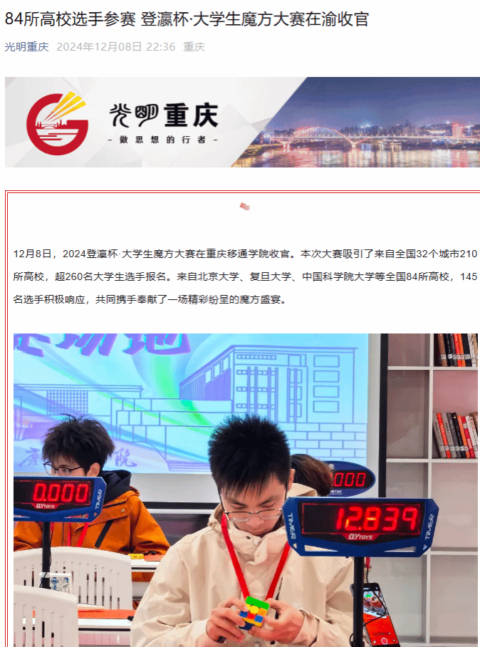 光明重庆:84所高校选手参赛 登瀛杯·大学生魔方大赛在渝收官