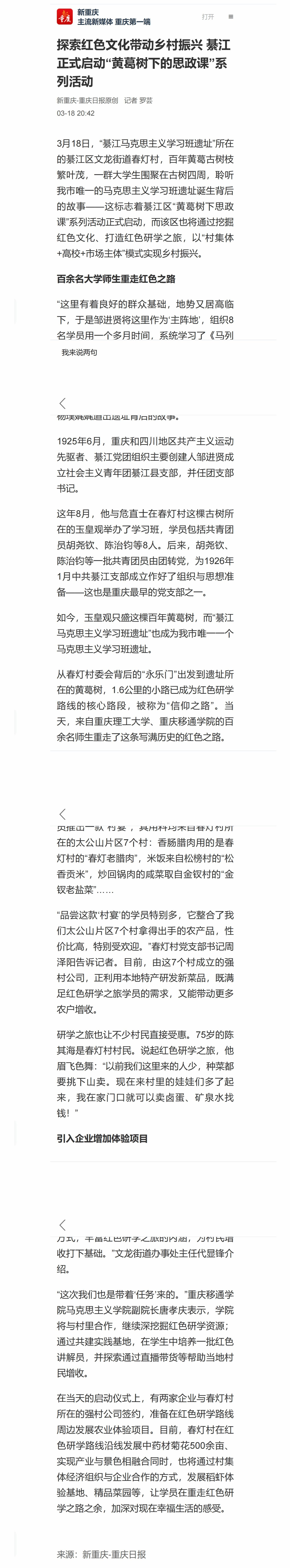 新重庆:探索红色文化带动乡村振兴 綦江正式启动“黄葛树下的思政课”系列活动