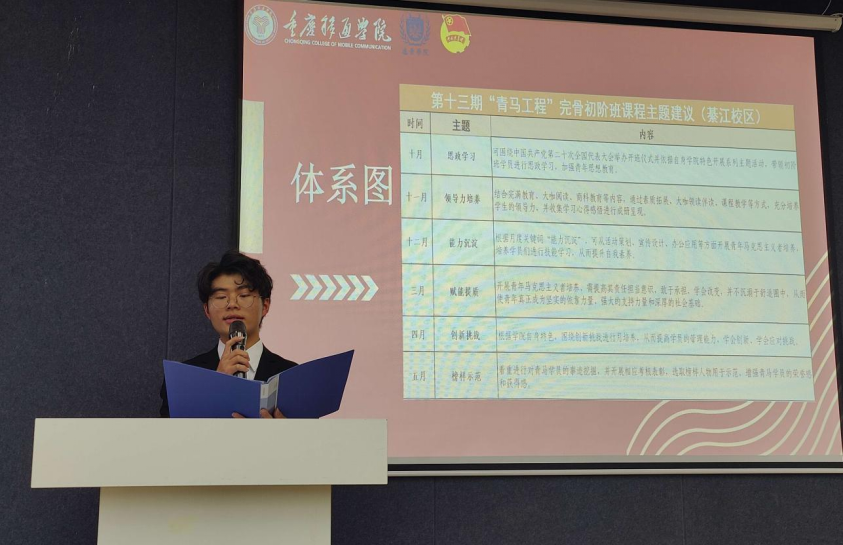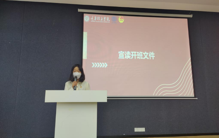 大会议程第二项,由2022级辅导员莫殷老师宣读开班文件。文件指出:为深入贯彻学习习近平新时代中国特色社会主义思想和党的二十大精神,深化实施青年马克思主义者培养工程,我院积极响应这一号召,开展了此次学生骨干培养计划系列课程。