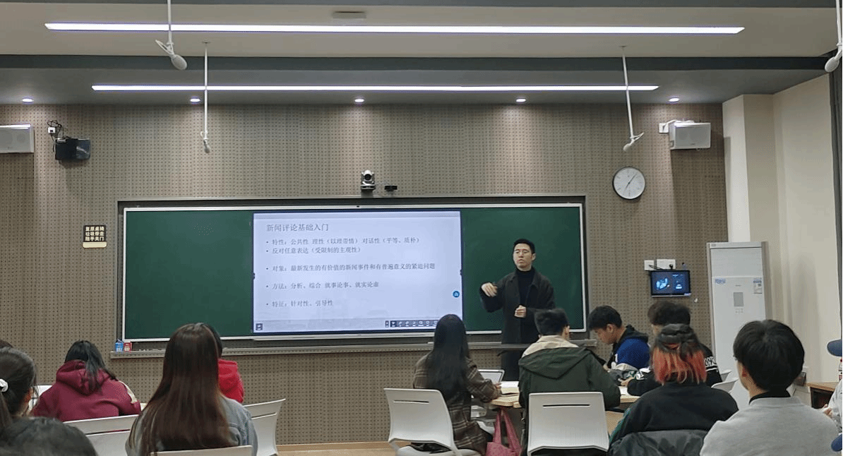 新闻评论者的观点表达,为要与新闻的选题贴切,钟老师清晰地指出好的观点就像一把利剑,带读者直接由现象透析本质,并鼓励同学们也要做出这样的利剑!而后钟老师总结观点要有时效性、重要性、接近性、影响力,针对读者还要考虑趣味性、新颖性以及超越文字的可挖掘性,更重要的是在于价值的“取舍”,他强调要在评论价值与新闻价值之间平衡,这样才能得到最优的答案。