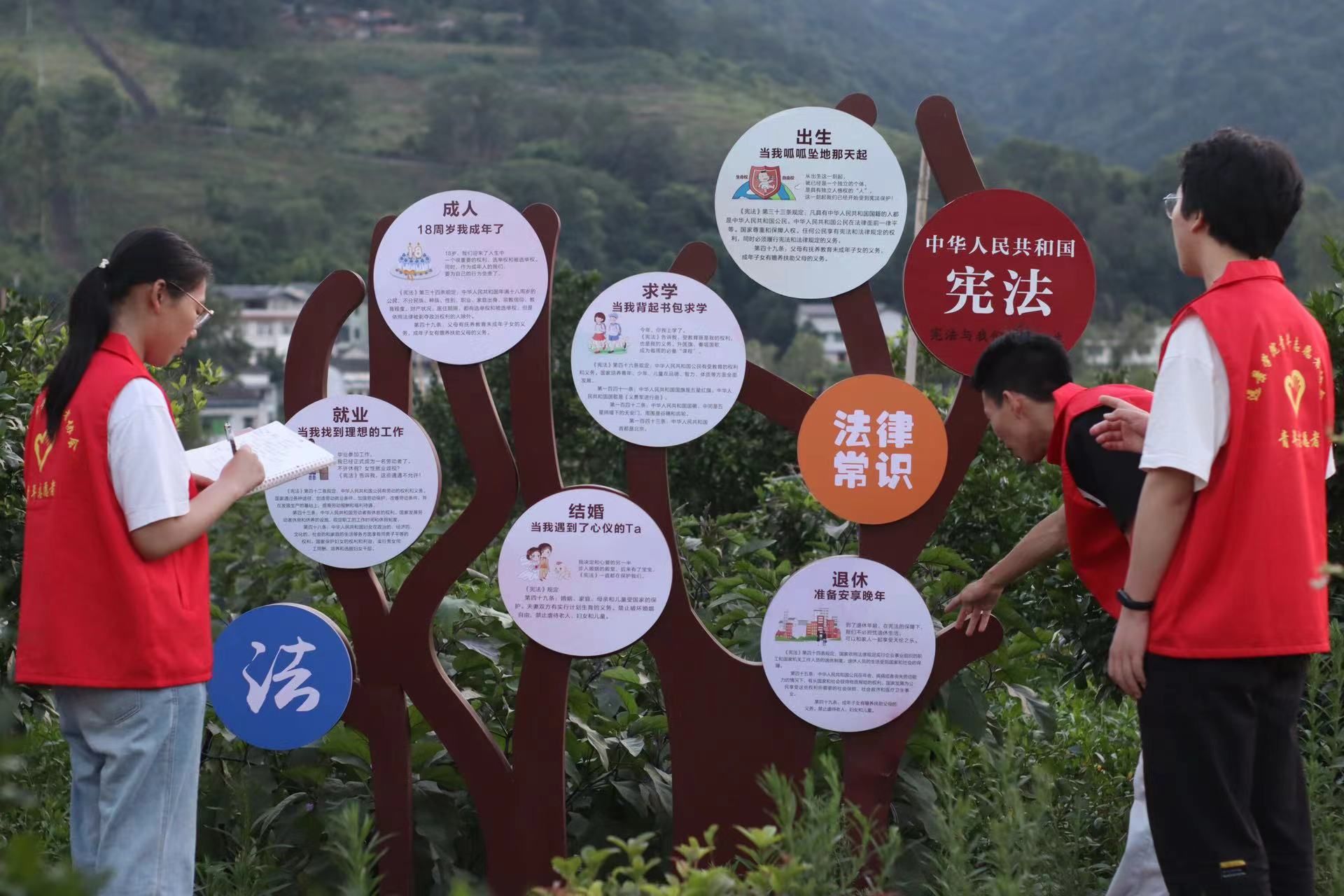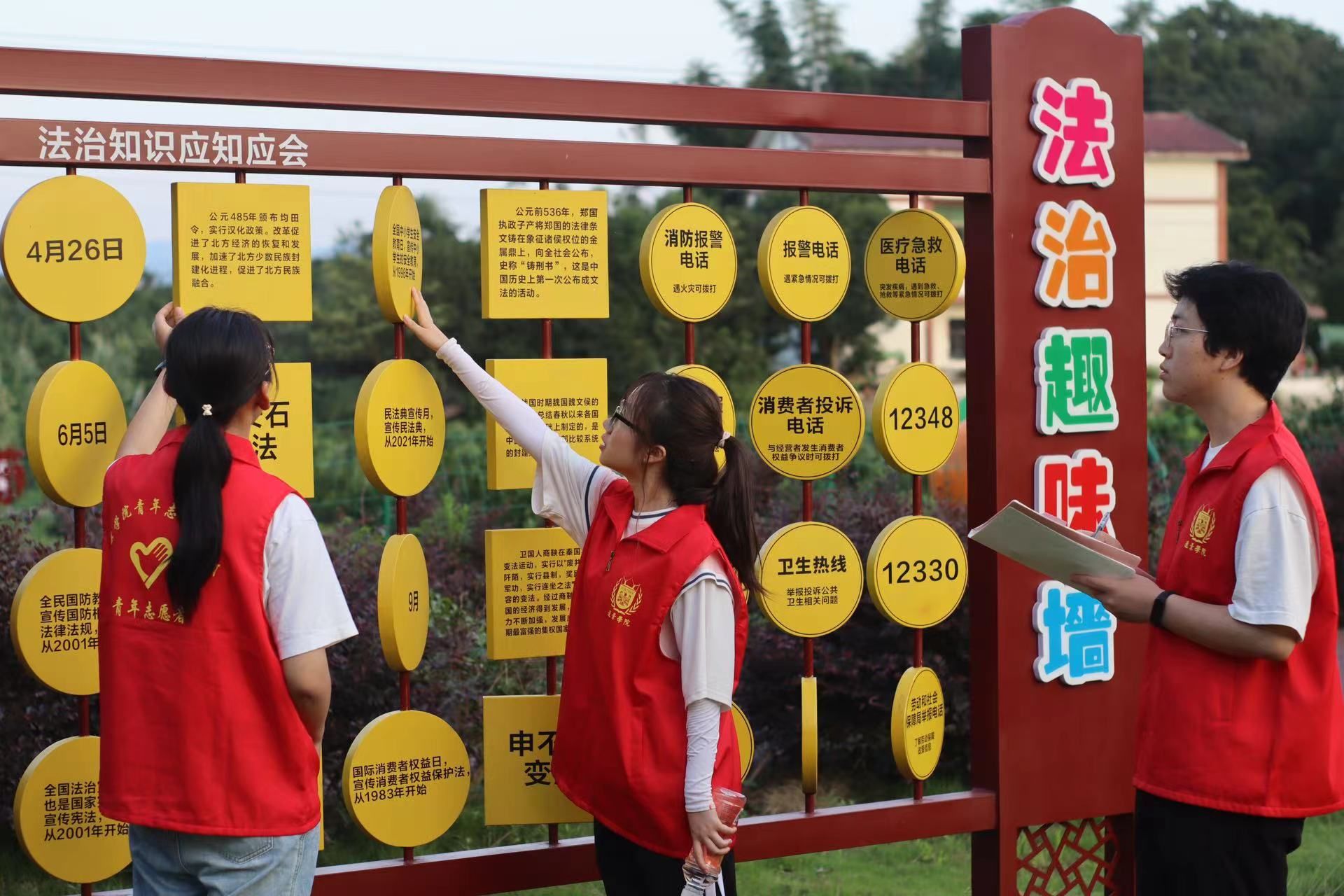 在本次调研中,“红浪”党史学习教育团还深入了解和走访普法宣传活动的相关场地,并与当地村民进行交流。镇司法局刘小涛向志愿者们介绍中华村的法治文化长廊为接下来的活动提供场地和想法建议。“红浪”党史学习教育团将和镇司法局合办在中华村的法治文化长廊对当地村民进行法治文化宣讲,志愿者们作为导游带领当地中小学生们踏寻法治文化长廊、感悟法治文化。最后采用寓教于乐的普法集市小游戏的方式向王良红军中学的学生们普及法治文化知识。听完团队的想法后,刘小涛表示,普法宣传活动的开展可以有效促进村民及学生们的法律意识的提升,为社会和谐发展提供助力。