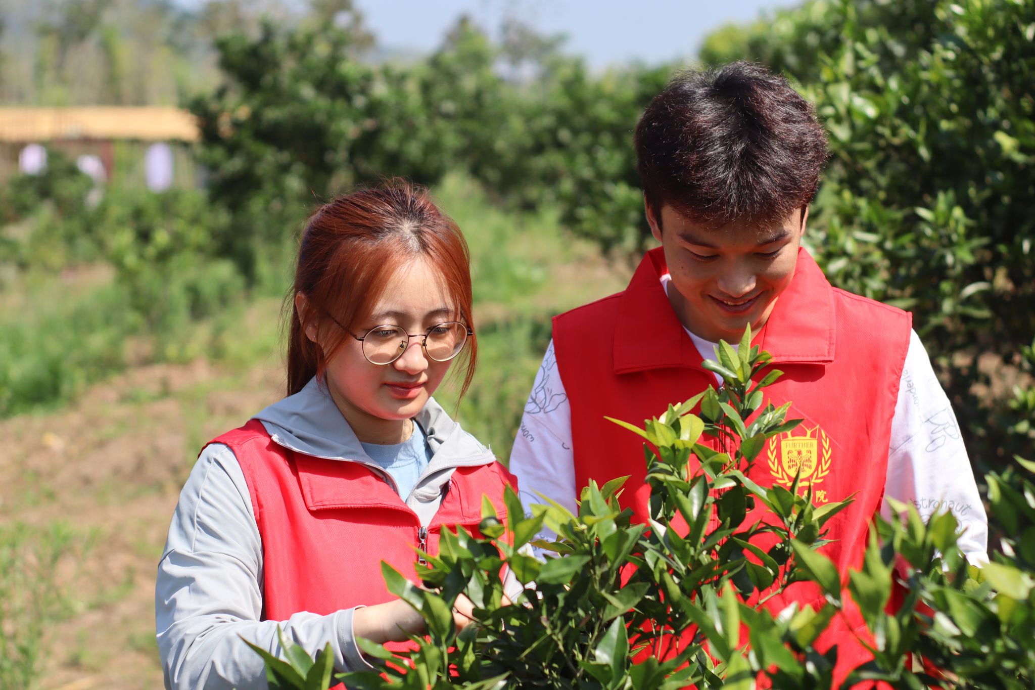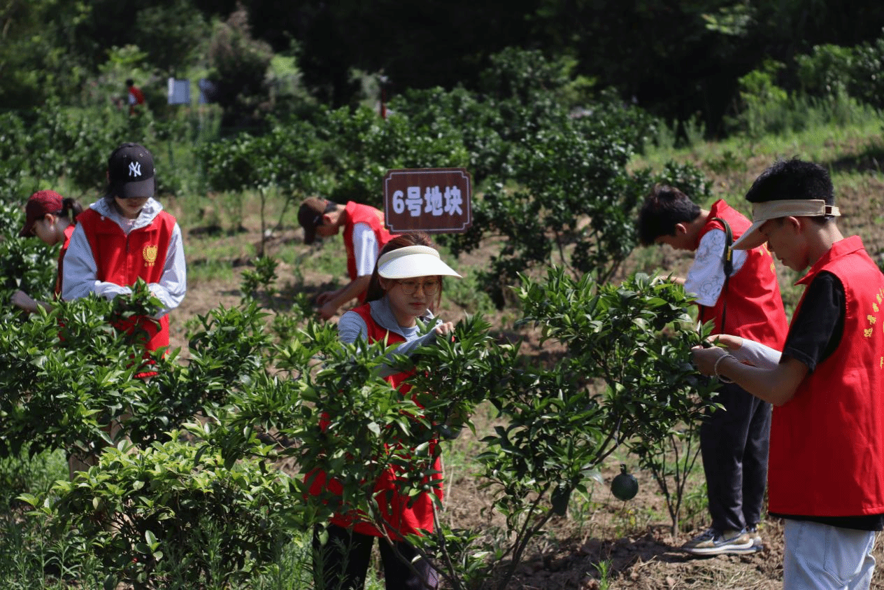 志愿者们随后前往中华村的果园,实地考察主要农产品“凤冠橘”的种植条件和销售渠道,并与柑橘园园主刘婆婆进行深入的交流,刘婆婆向志愿者们具体介绍了凤冠柑橘,其具有柔软多汁、香甜可口、营养丰富等特点,近年来深受游客的喜爱,给当地带来极高的经济价值。队长覃雨涵和指导陈沁老师等与刘婆婆商讨具体的活动细节。身为大学生的我们也将积极推动当地果品的推广和销售,为乡村振兴的发展贡献自己的力量。