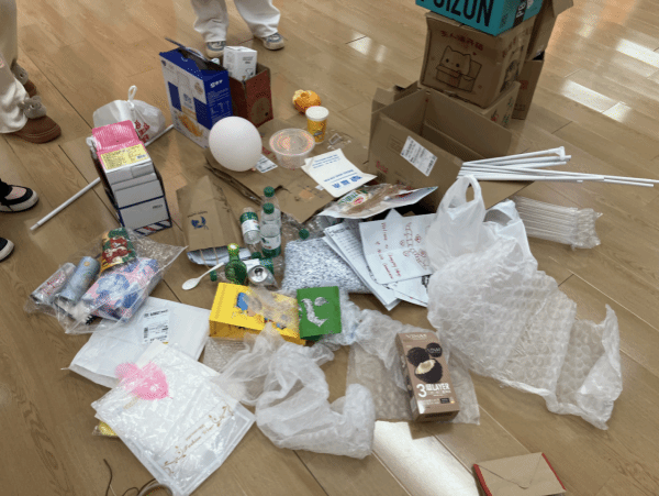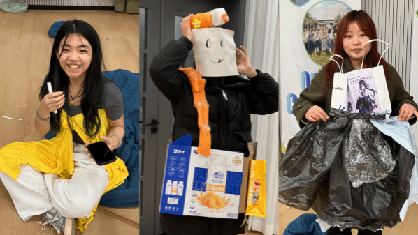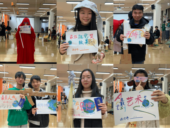 为了宣传环保理念并帮助同学们在紧张的期末复习中放松身心,2024年12月13日傍晚七点,黄凌嫣和戴扬导师组联合举办的环保设计大赛在瀛溪书院排练厅活力绽放。时针刚指向七点,十八位怀揣热忱与创意的组员们便鱼贯而入,他们手中拎着积攒了数周的各类可回收垃圾。饮料瓶碰撞发出清脆声响,旧作业纸堆叠出知识的厚度,磨损布料散发着生活的余温,这些在日常生活中被弃若敝履的物品,此刻成为了他们手中开启创意大门的神奇钥匙。在学业压力如山的期末季,组员们如同忙碌间隙的追光者,挤出宝贵时间筹备这场大赛,只为心中那份对环保与创新交汇的执着追求。
