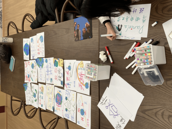 在所有同学都完成设计后,黄凌嫣与戴扬两位导师手持奖状与奖品来到排练厅前方。十八张各具特色的奖状上的一笔一划皆倾注心血,独特图案与奖项名称专为每位参赛者定制,力求精准捕捉每份设计的灵魂闪光点,给予每位设计师最恰如其分的肯定。同时,每份奖状上都画有一个被“For the World”的标语包裹的地球的图案,用以提醒每一位获奖者在未来的生活中也要时时刻刻保护环境、爱护我们唯一的地球。