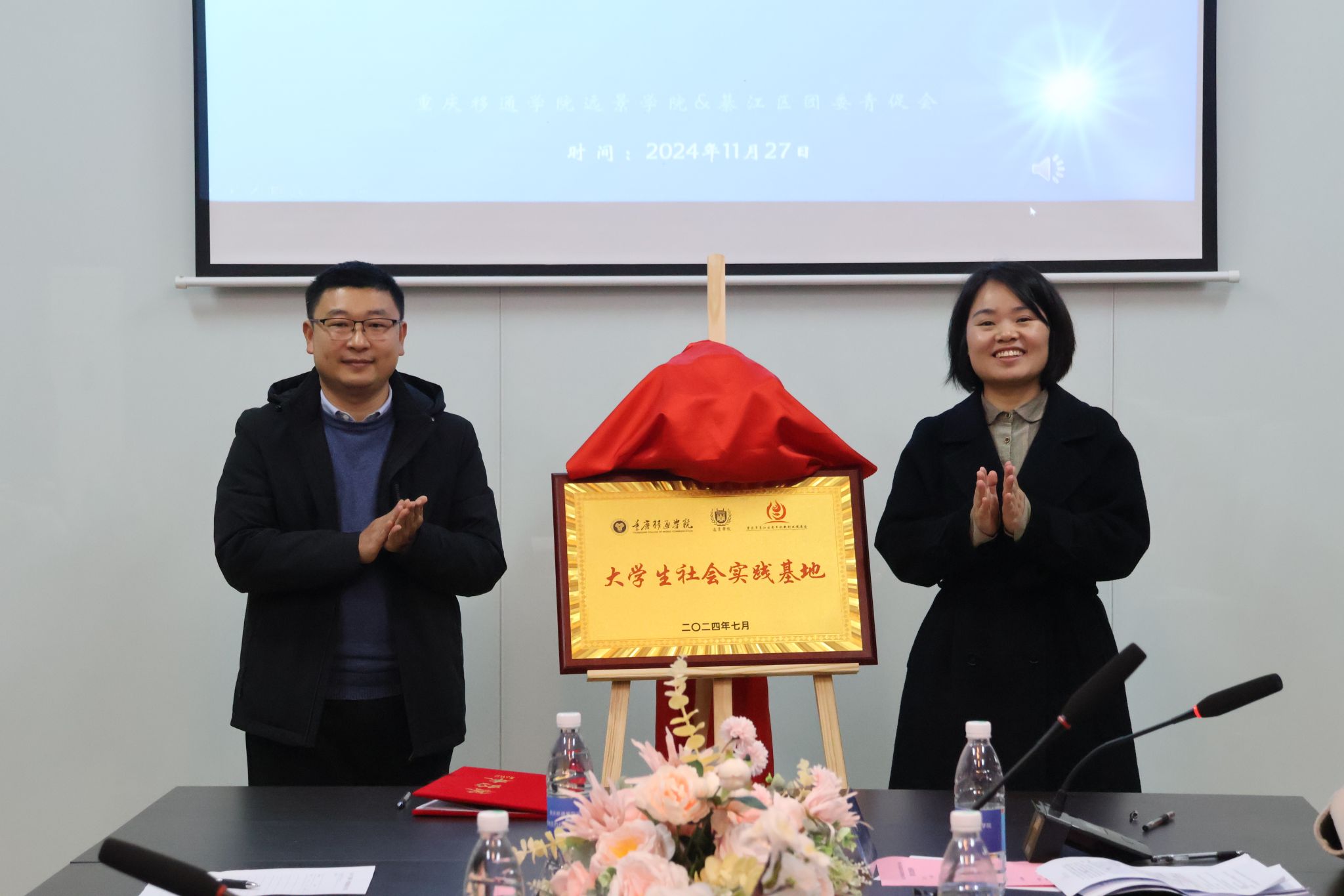 最后,远景学院副院长强杨、綦江区青年创新创业促进会会长郭朝霞分别代表双方签署协议,正式达成共建合作。綦江区团区委副书记朱泽东与校长助理谢银平共同为大学生社会实践基地揭牌。依据协议,双方将在多领域展开深度合作。在创新创业教育方面,整合资源构建系统课程体系,邀请专家企业家开展讲座培训,分享前沿知识与实战经验,激发学生创新思维与创业热情;在项目孵化层面,提供场地、资金、技术等一站式服务,助力创业项目从创意到市场的转化;于志愿服务领域,联合组织多元公益活动,培养学生社会责任感与奉献精神,增强学生对社会问题的认知与解决能力。