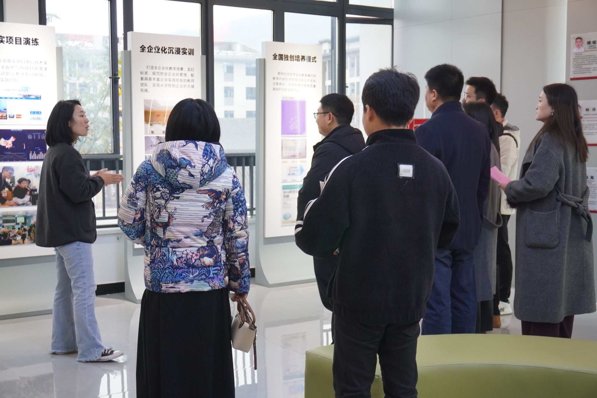 签约当天,团区委、綦江区青创中心、青促会部分企业家代表一行在校长助理谢银平、远景学院副院长强杨和相关老师的陪同下,参观了重庆移通学院双体软件精英产业学院与就业创业指导与服务中心。双体唐蜜老师介绍到,双体的发展历程与学院特色,通过双体走廊上的文化墙,一行人见证了学生的成长与荣誉。就业创业指导与服务中心副主任毛敏,向参观人员介绍了重庆移通学院的就业工作与就业成果,并对支持重庆移通学院的就业工作的各相关部门表示感谢。通过本次交流,与会企业代表对重庆移通学院的育人工作表示认可,部分代表企业表达强烈兴趣,愿意进一步合作,助力重庆移通学院就业工作。