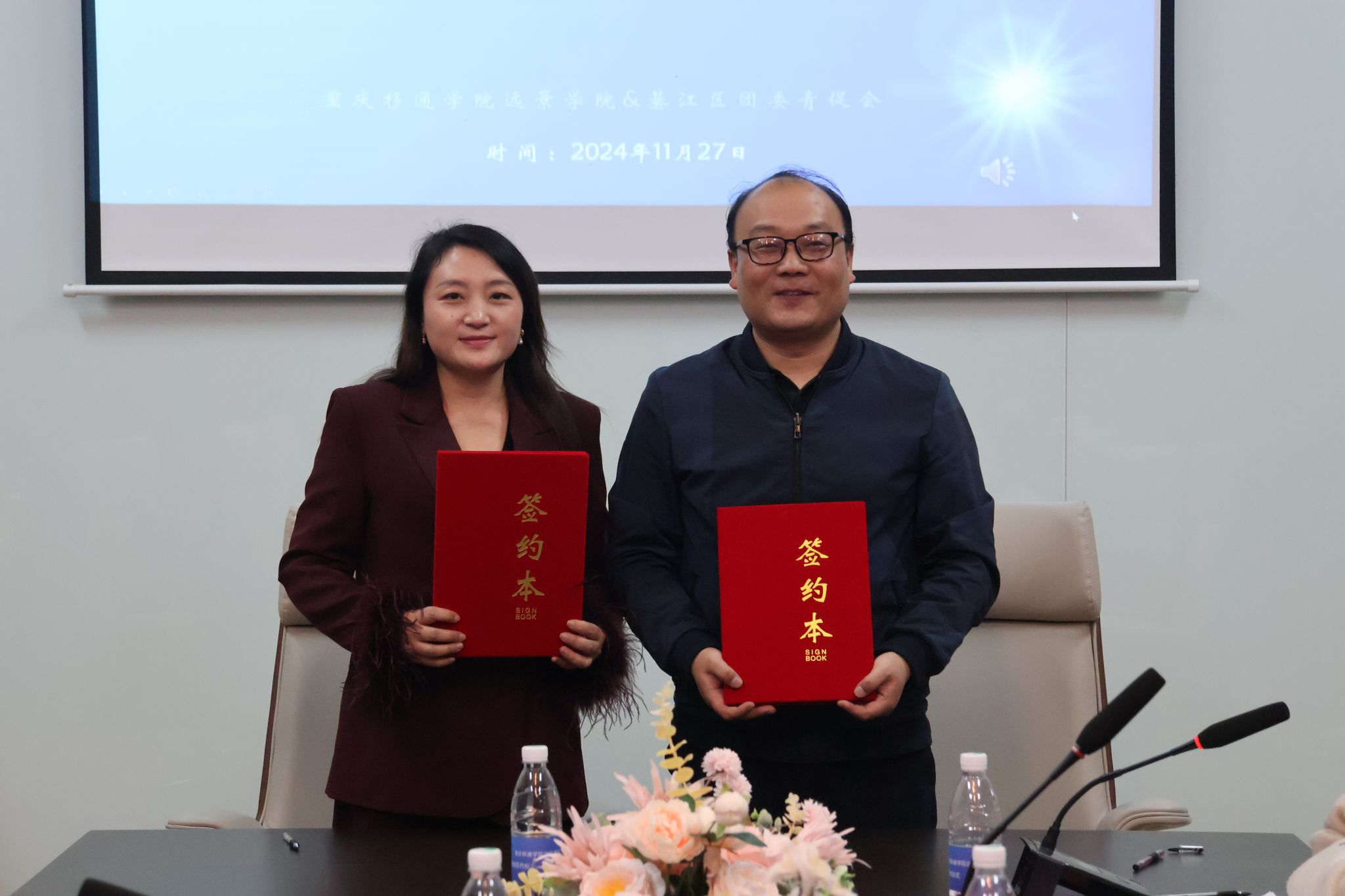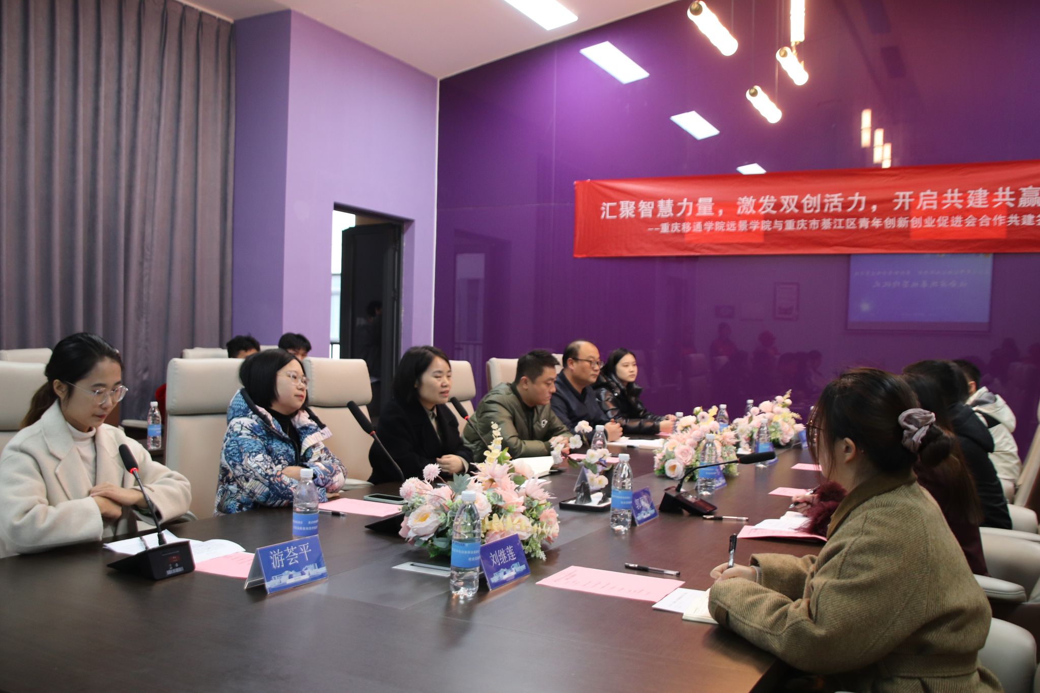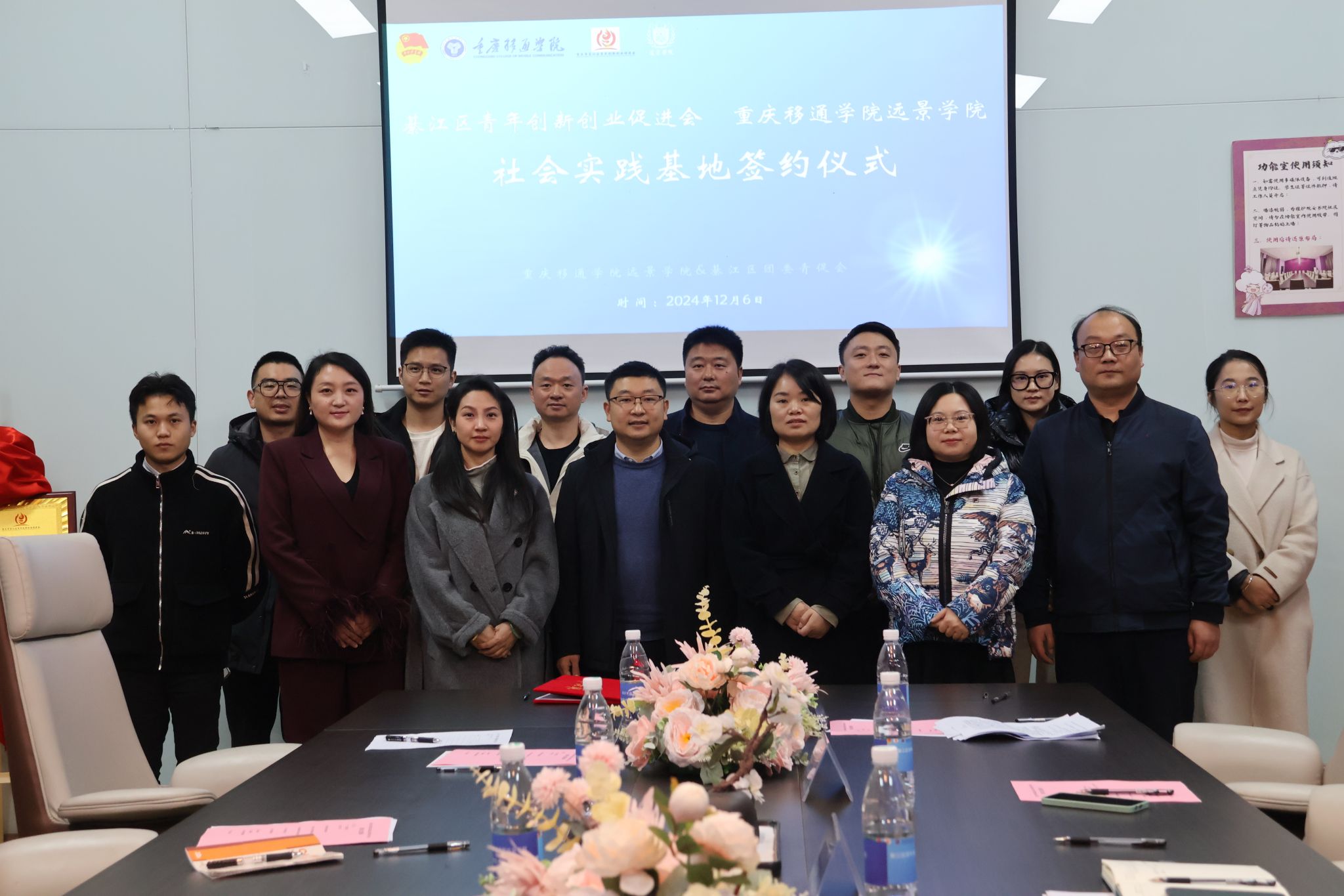 2024年12月6日,大学生社会实践基地签约仪式在我校观云书院小雪会议室隆重举行。綦江区团区委副书记朱泽东、綦江区青创中心主任陶月琳、綦江区青年创新创业促进会会长郭朝霞及青促会部分企业家代表、重庆移通学院校长助理谢银平、校团委副书记蔡星宇、就业创业指导与服务中心副主任毛敏、远景学院副院长强杨,以及远景学院师生代表共同出席,见证这一重要时刻。签约仪式的顺利举行,标志着双方在培养创新创业人才领域深度合作的正式启航,志在为移通学子构筑起一座成长与实践的坚实桥梁,全力助推社会创新发展迈向新高度。