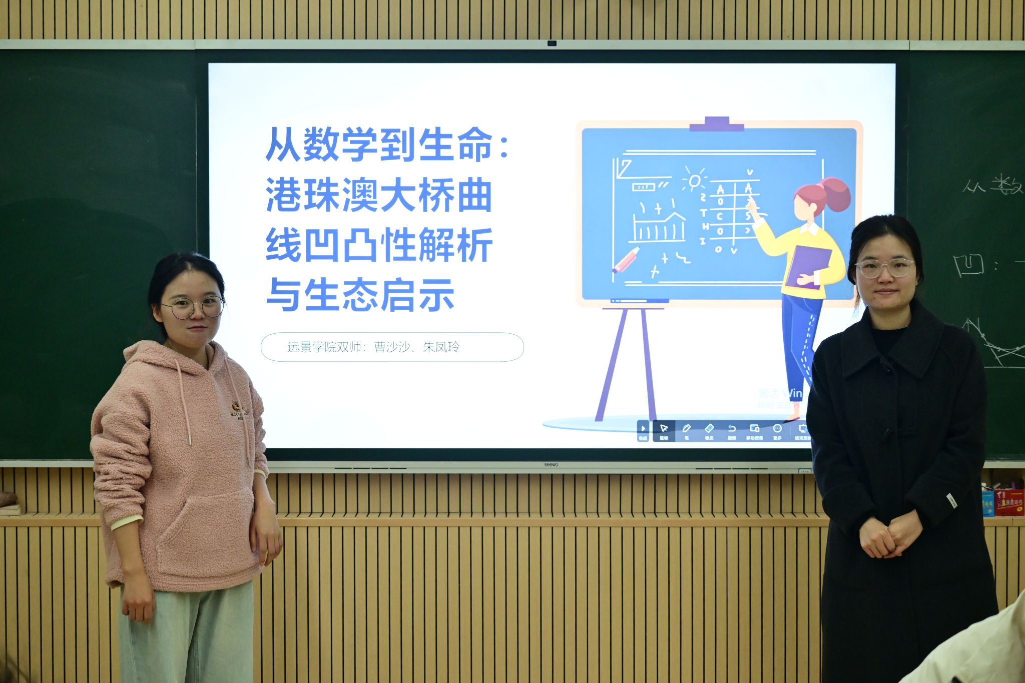 2024年12月1日上午,远景学院《高等数学》的课堂上,一场兼具通识性与趣味性的双师课堂拉开帷幕。课堂以“港珠澳大桥——用凹凸性保护生态”为主题,由数学教师曹沙沙与生命科学教师朱凤玲联合授课,带领学生深入探讨港珠澳大桥设计中的数学与生态学原理。本次课程充分展示了跨学科融合的魅力,不仅拓宽了学生的知识视野,也激发了他们对科学与自然深层次关系的思考。