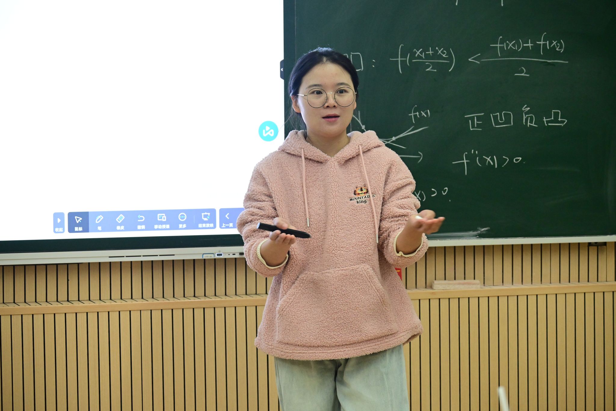 课程伊始,曹沙沙老师通过一段精彩的视频让学生初步认识港珠澳大桥,并以“港珠澳大桥为什么设计成弯的?”这一设问巧妙引入曲线凹凸性的数学概念。她通过函数图像生动讲解了凹凸性的定义及判别定理,并结合实际案例详细解析了多项式函数凹凸区间的求解步骤,为学生打开了数学分析的全新视野。