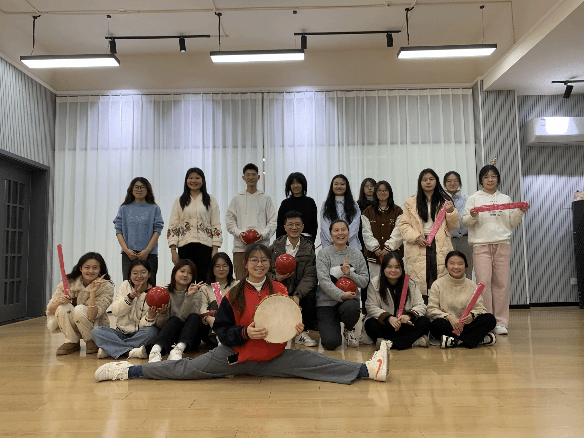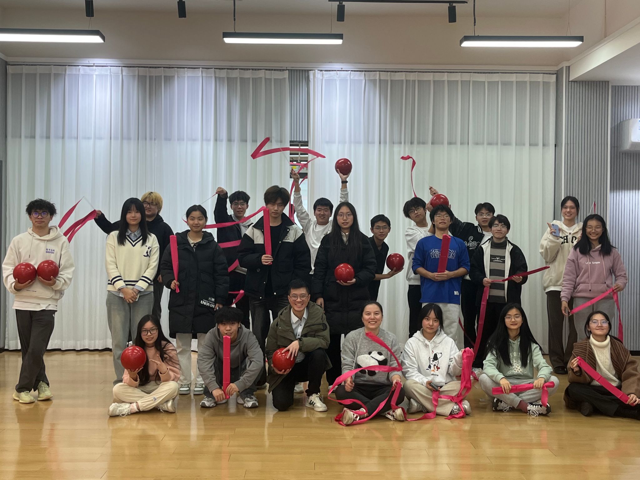 在课程的最后,同学们分组进行团队合作,他们依据对动作和道具的深刻理解,发挥团队的创造力进行编排创作。在课程的闭幕环节,各小组纷纷登台,展示了他们精心策划的成果。学生们以其非凡的创意和才华,将挑战转化为一场场视觉与创意的盛宴,不仅完美地完成了任务,更在过程中展现了团队协作与个人才华。