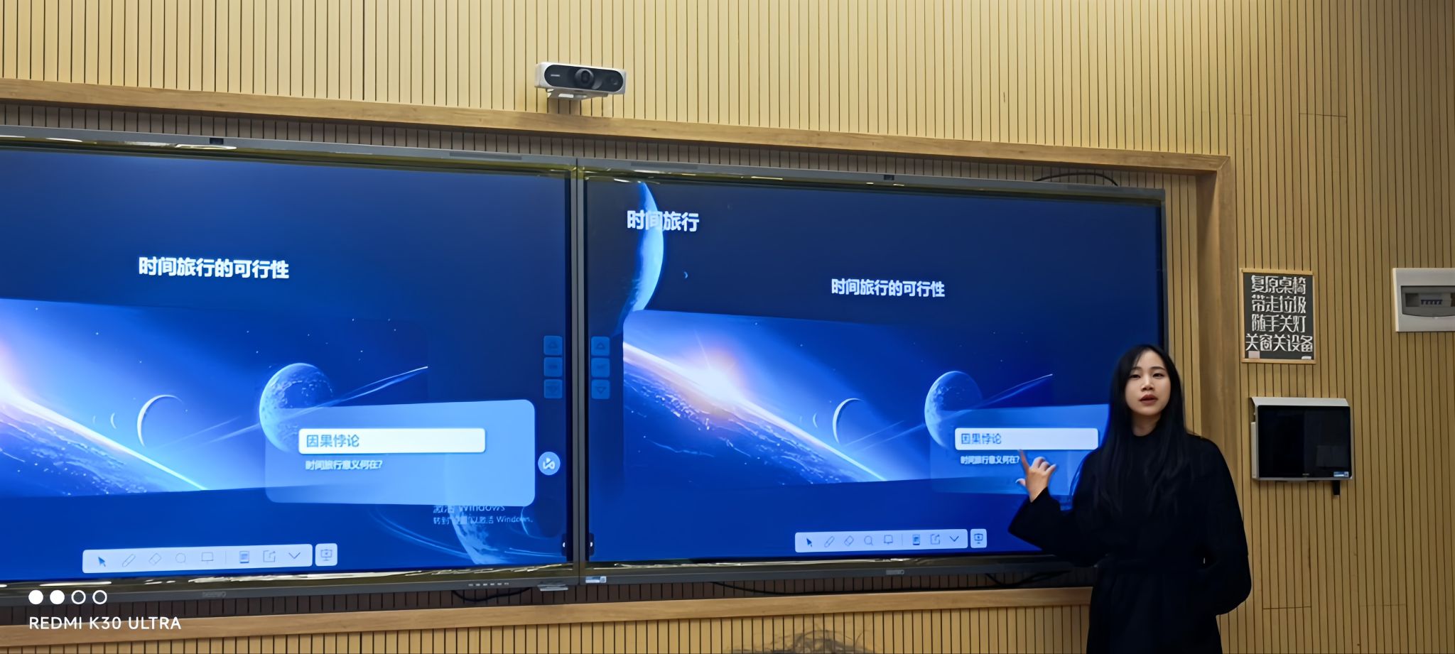 李佳怡老师以自己阅读《时间简史》的心得体会为引,拉开了本次活动的序幕。李老师简单地对《时间简史》的内容进行了概况,然后基于书中提到的时间的相对性、虫洞等概念引出了“时间旅行是否可行”这一问题。她表示时间旅行可能会引起因果悖论,并以“祖父悖论”为例为同学进行了讲解。祖父悖论指假如一个人通过时间旅行回到过去,并杀死了自己的祖父,那么按照因果关系,他的父亲将不会出生,那么这个人也无法存在。 这个悖论看似是一个逻辑游戏,实则深藏着时间旅行和宇宙存在的奥秘。随即,同学们根据李老师的讲解对能否进行时间旅行这一问题展开了讨论并发表了自己的看法。李庄同学表示,如果平行宇宙真实存在那么就能解决时间旅行所造成的因果悖论问题。