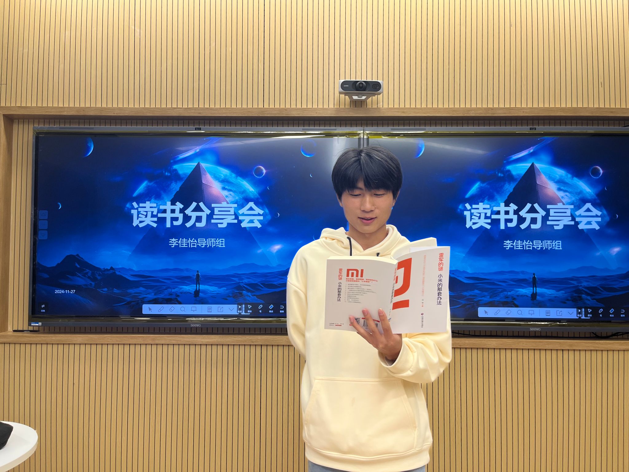 在李佳怡老师分享完之后,同学们也陆续进行了自己的读书分享。李庄同学和杨波同学不约而同的都对《雷军传》进行了分享。杨波同学将雷军的创业历程、商业智慧以及对科技的执着追求一一剖析,用生动讲述与深入解读的方式引领同学们走进雷军的科技世界,点燃了同学们对科技创新与商业探索的热情,也拓宽了同学们的视野格局。李庄同学则表示雷军让他明白了成功并非一蹴而就,只有经历无数坎坷和挫折并在其中不断磨练,才能提升自我。雷军离开金山创造小米,彰显了雷军对梦想的执着追求和创新的无限热情,也激励着他在未来的学习生活中要“敢想,敢做,敢追求”,不惧怕失败,勇敢追逐梦想。