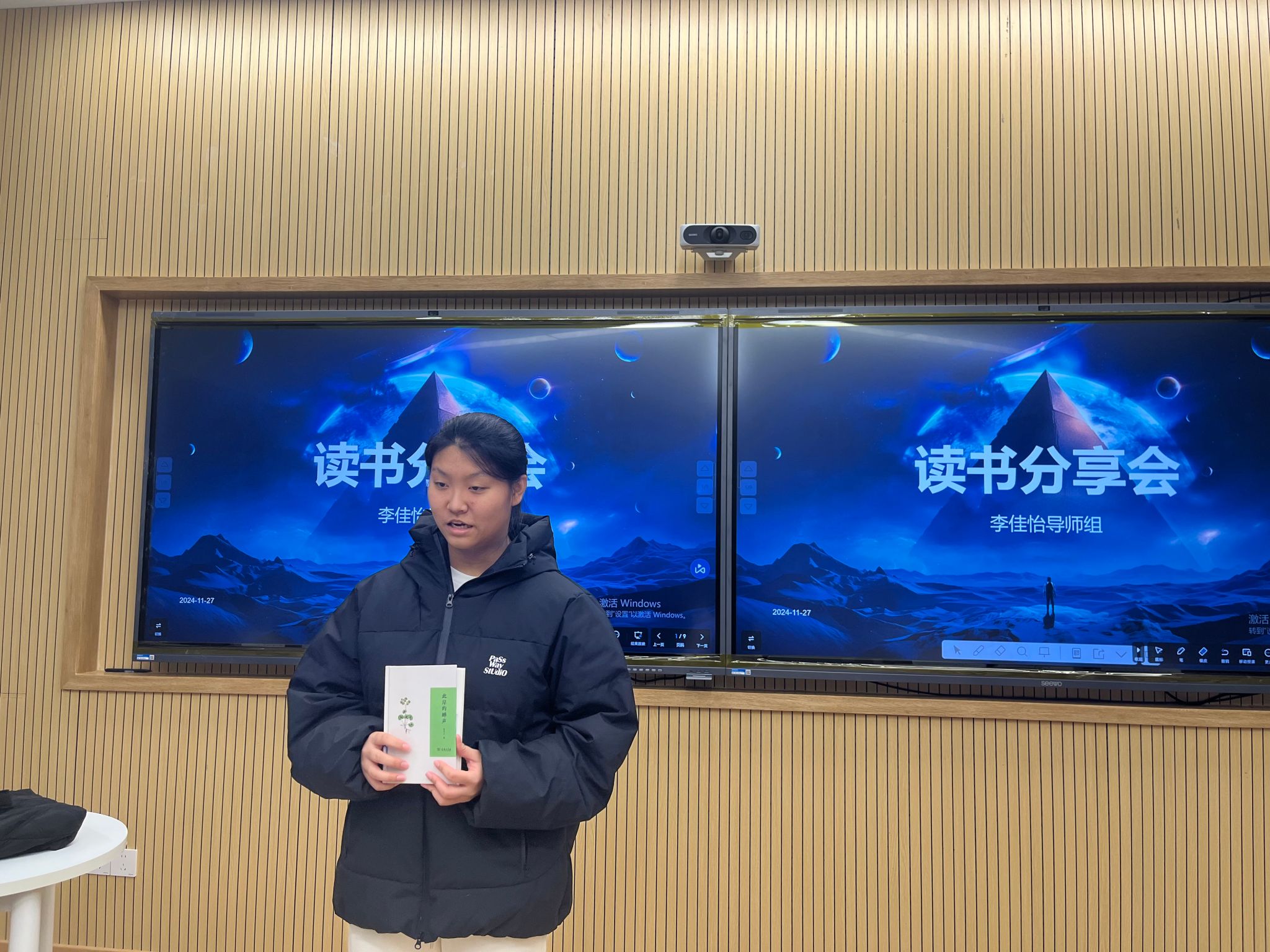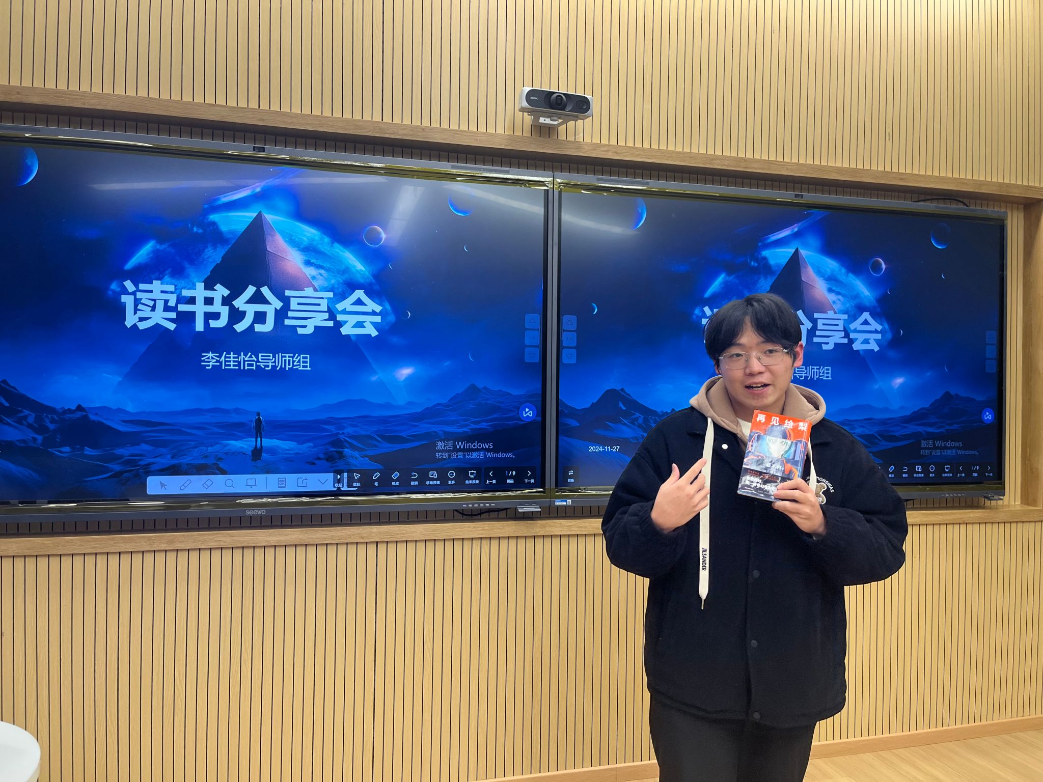 培根曾说:“读书足以怡情,足以博采,足以长才。”书籍如同一把钥匙,能够解开内心的困惑。为了激发学生的阅读兴趣、提升文学素养、并拓宽科学视野,李佳怡导师组与胡挽澜导师组于2024年11月27日晚在智者楼407联合举办了一场别开生面的读书分享活动。活动通过阅读分享与互动交流相结合的形式展开,学生们围绕精选书籍交流阅读感悟,并互相推荐自己喜爱的书目。互动环节中,学生们通过提问与讨论进一步深化对书籍内容的理解。同时,导师组成员积极参与,与学生共同探讨书籍中的思想与意义。整场活动气氛融洽、讨论热烈,充分体现了以书会友、思想共鸣的阅读精神。