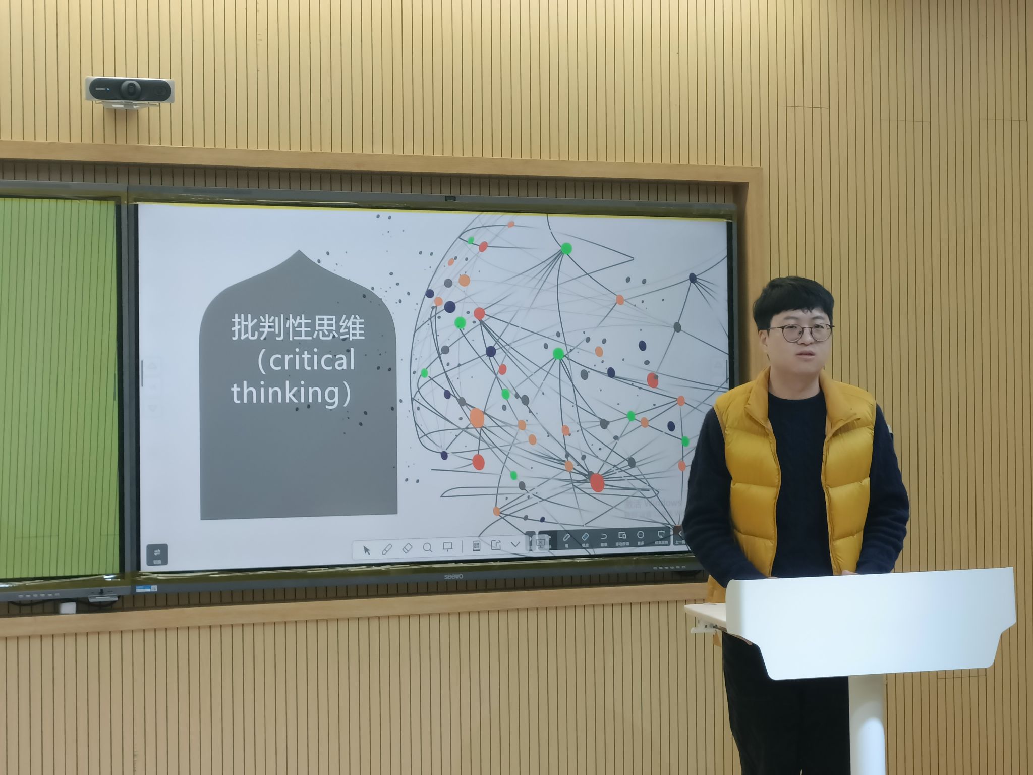 为了更好地适应未来社会的发展需求,培养具有创新精神和实践能力的高素质人才,深化教学教研工作,提高教师们的教学水平,綦江校区远景学院基础课程教研室本学期持续开展系列课程研讨活动。11月27日,朱建霖、邓锦莹和孟凡升三位老师作为研讨系列活动主题发言人,就“人工智能与批判性思维培养”分享了他们外出参会的收获。本次研讨旨在探索如何将人工智能技术有效融入通识教育体系,同时强调如何在教学过程中强化学生的批判性思维能力,为教师教研教学创新与学生未来发展奠定坚实基础。