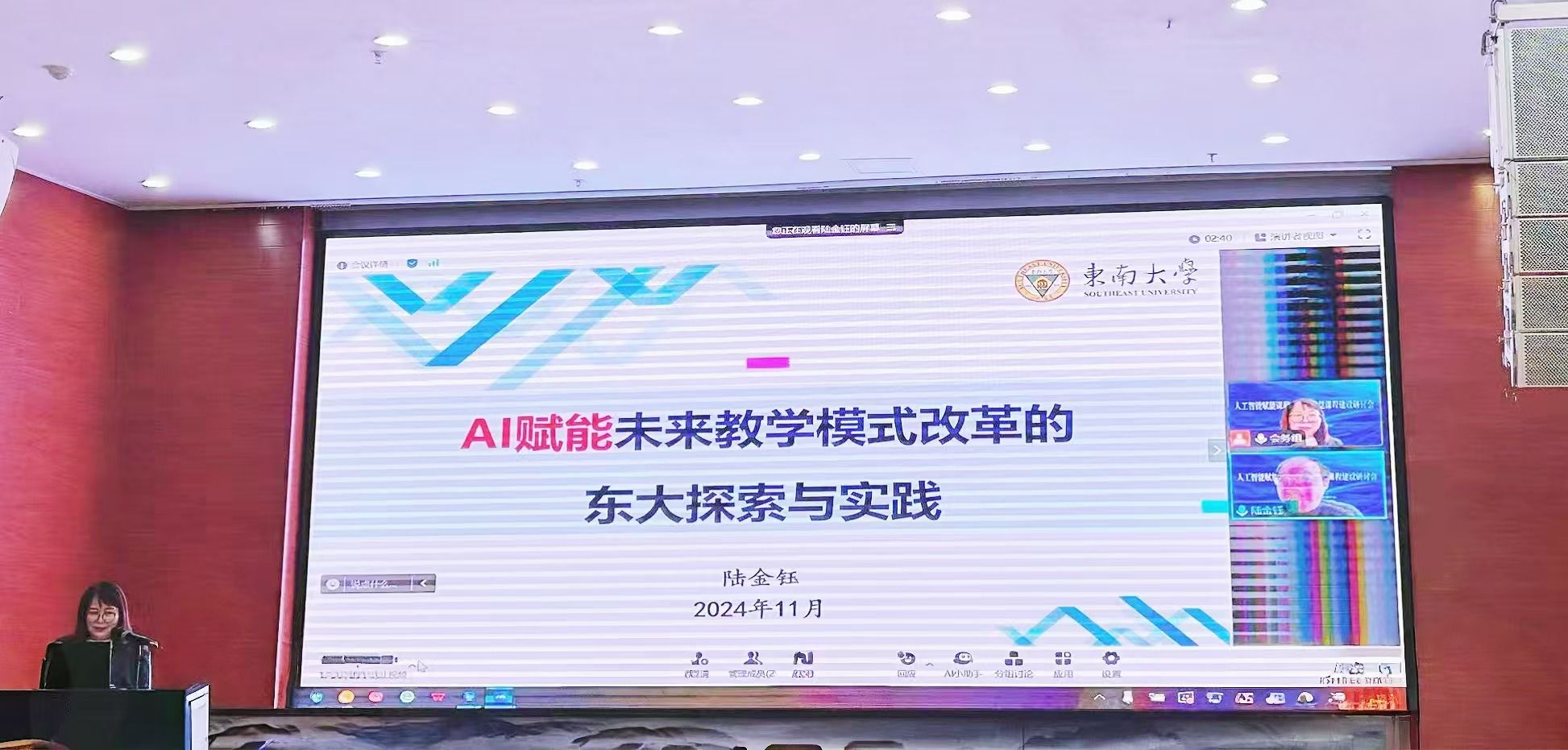 陆金钰副处长则以“AI赋能未来教学模式改革的东南大学探索与实践”为题,分享了东南大学在AI时代下育人理念的转变和教学模式的创新实践,强调了从“学知识”向“强能力”转变的重要性。并基于东南大学的“时空开放·动态自主·问题牵引”的创新教学模式,介绍了东南大学“至善课堂”和“至善成长”计划的实施效果。
