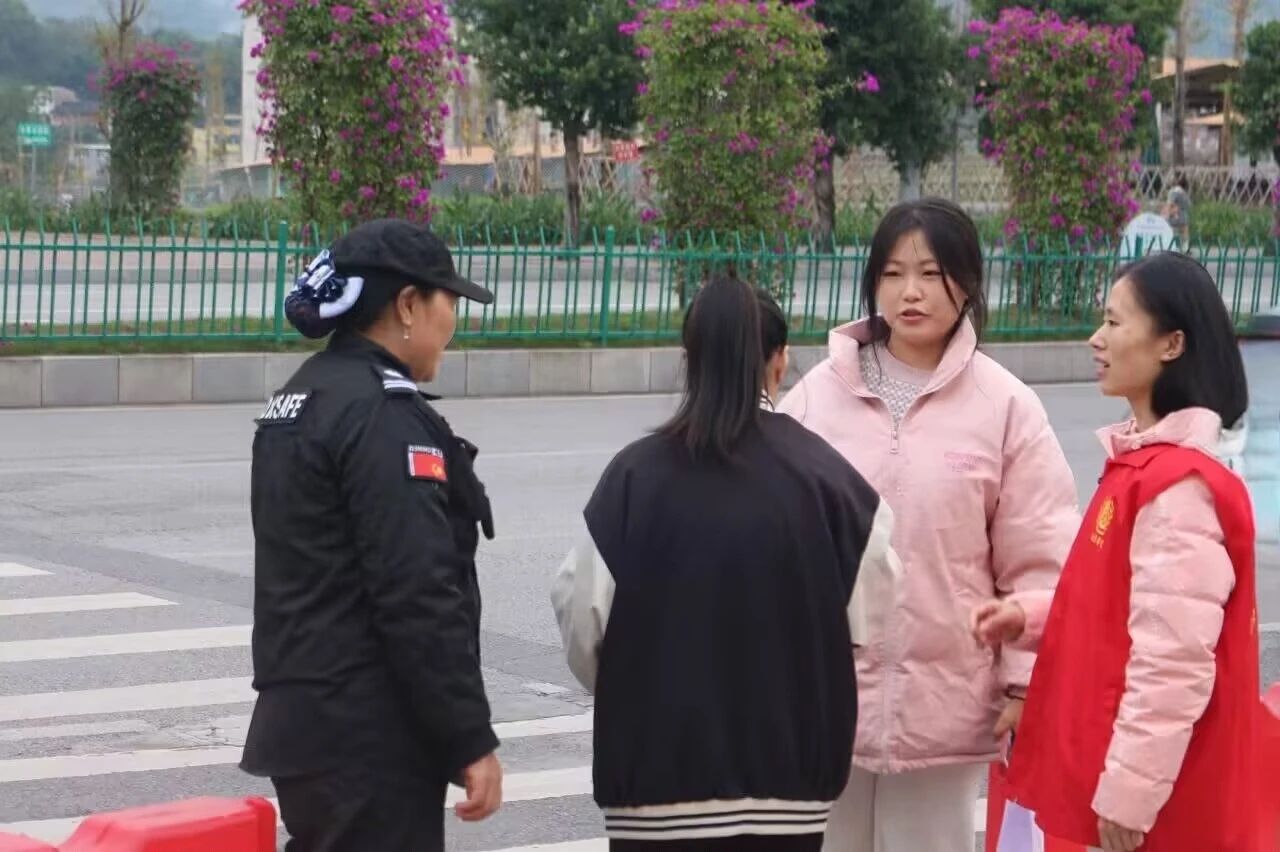 活动伊始,“綦路安行”交通安全志愿服务队与学校保卫处紧密协作,依据校门口人流量的实际状况,精心策划志愿者劝导员的任务布局,确保每一个岗位都分工明确、责任清晰。劝导员们迅速到岗,身着鲜艳醒目的红马甲,全身心投入到交通规劝活动之中。志愿者在各自的岗位上,以高度的责任感和使命感坚守工作职责。