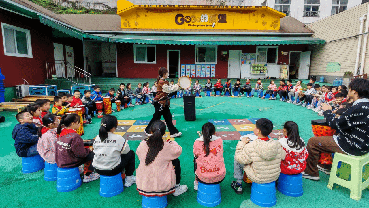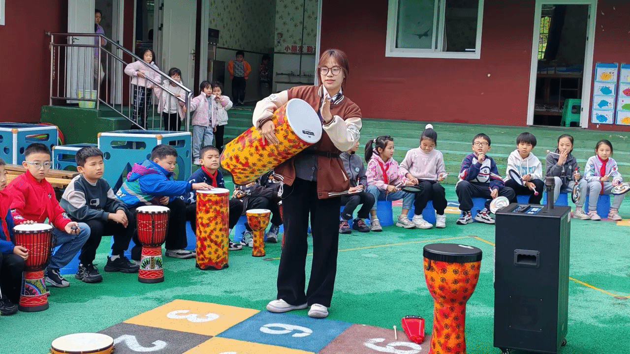 志愿者们还把乐器和音乐带到了课堂,以“鼓圈活动”与“音乐游戏”贯穿整个互动环节,充分发挥音乐疗愈的力量。小朋友们在节拍和音乐律动中感受同伴互助的力量,在乐器击打和舞动中为内心的情感表达找到出口。在老师的引导下,喊出了积极的自我、唱出了优秀的心声。