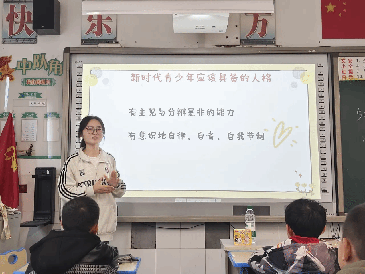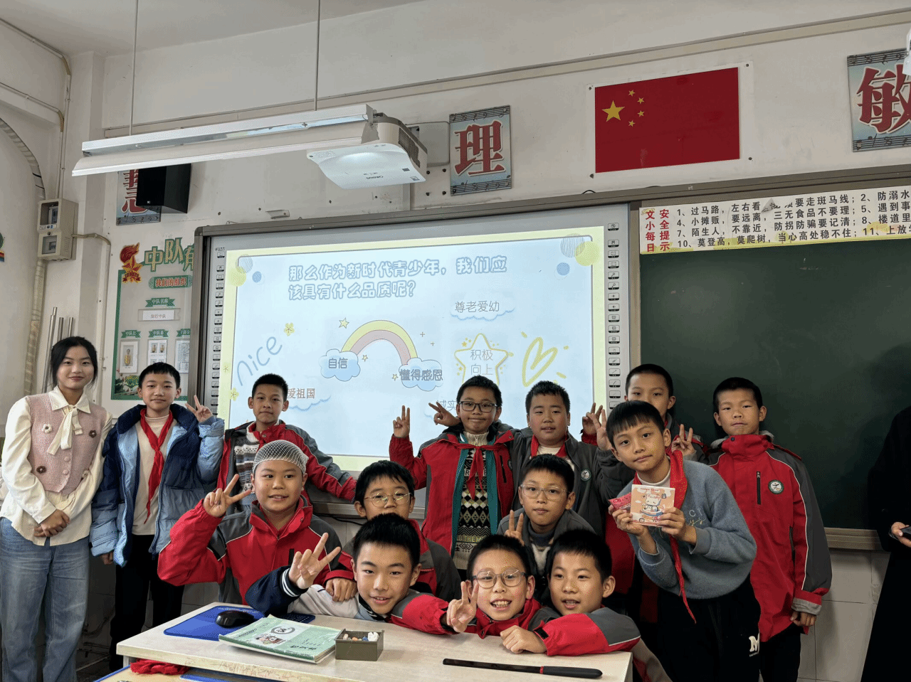 课堂上,来自重庆移通学院远景学院的大学生志愿者以真实案例为切入点,向小学生们揭露了抽奖、零食、游戏等背后隐藏的商家无底线营销套路,进而分析了小朋友们控制不住自己行为背后的心理原因。随后,志愿者们通过讲述自己的亲身经历和成长故事来引导小朋友们如何明辨是非,通过“小故事”引出“大道理”,诠释了新时代青少年应具备的优秀品质:自律、自省与自我节制。