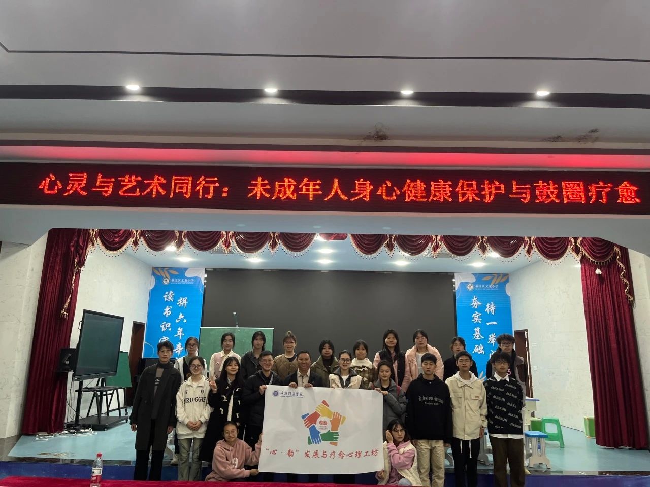 为深入贯彻落实《高等学校课程思政建设指导纲要》和《全面推进“大思政课”建设的工作方案》,积极响应国家关于推进大中小学思政课一体化建设的号召,2024年11月22日,重庆移通学院远景学院心理学张林老师与音乐剧颜汐宸老师共同带领团队,以“出击无底线营销.保护未成年身心健康”为主题,围绕“优秀人格塑造”这一核心目标,将“鼓圈”“音乐游戏”融入綦江区文龙小学的课堂,为小学生们呈现了一堂跨学科融合的“特殊思政课”。本活动通过揭示商家营销陷阱与引导情感表达的方式,帮助小学生树立自律意识,以心理教育与音乐疗愈的双重力量培养新时代青少年的优秀人格,展现课程思政创新实践的新路径。