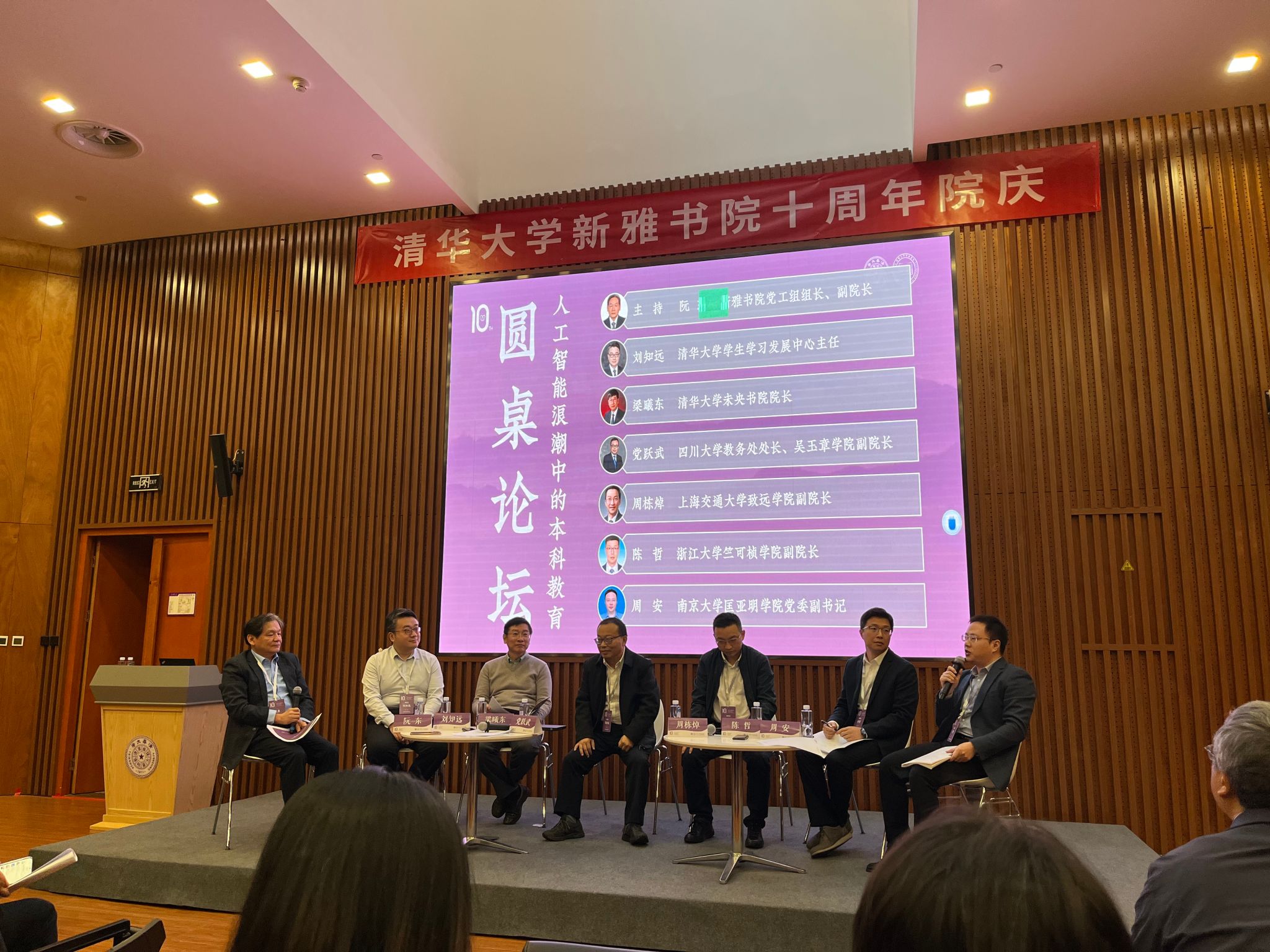 人工智能论坛中,各位专家具体分享了AI赋能教育教学的实践经验,以及面对人工智能浪潮在大学教育中我们应该关注的问题,强调了通识教育作为“成人”的教育的重要价值。与会者们认为,人工智能为本科教育带来了机遇与挑战,高校应积极探索AI赋能教育的新模式,同时也要关注学生的全面发展,加强师生间的沟通交流,培养具有创新能力和人文素养的复合型人才。现场不同高校也就诸多发展中存在的疑问进行请教并展开讨论。新雅书院十周年庆典在圆桌论坛的热烈的讨论中圆满落幕。