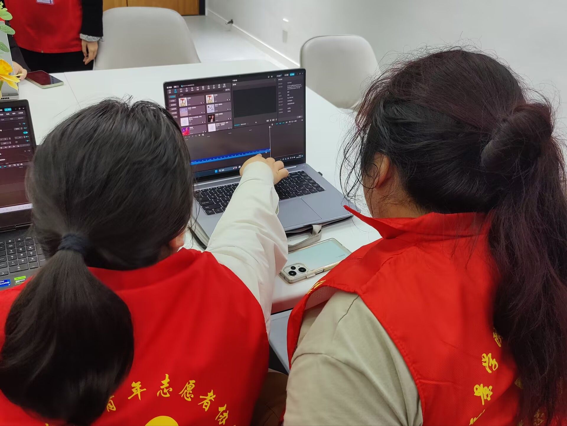 活动尾声,主讲人张倩分享了一系列主题丰富、风格多样且制作精良的视频作品。这些作品充分展示了志愿者们在培训过程中对剪辑技巧的专业运用和对创意表达的深入理解;犹如一扇扇通往多彩创意世界的大门,吸引了在场所有青年志愿者的高度关注。志愿者们则一边全神贯注地欣赏作品,一边认真学习专业技巧,并不时相互交流分享自己的深刻感悟与创新想法,现场气氛热烈而富有深度,充满了浓厚的专业学习氛围。