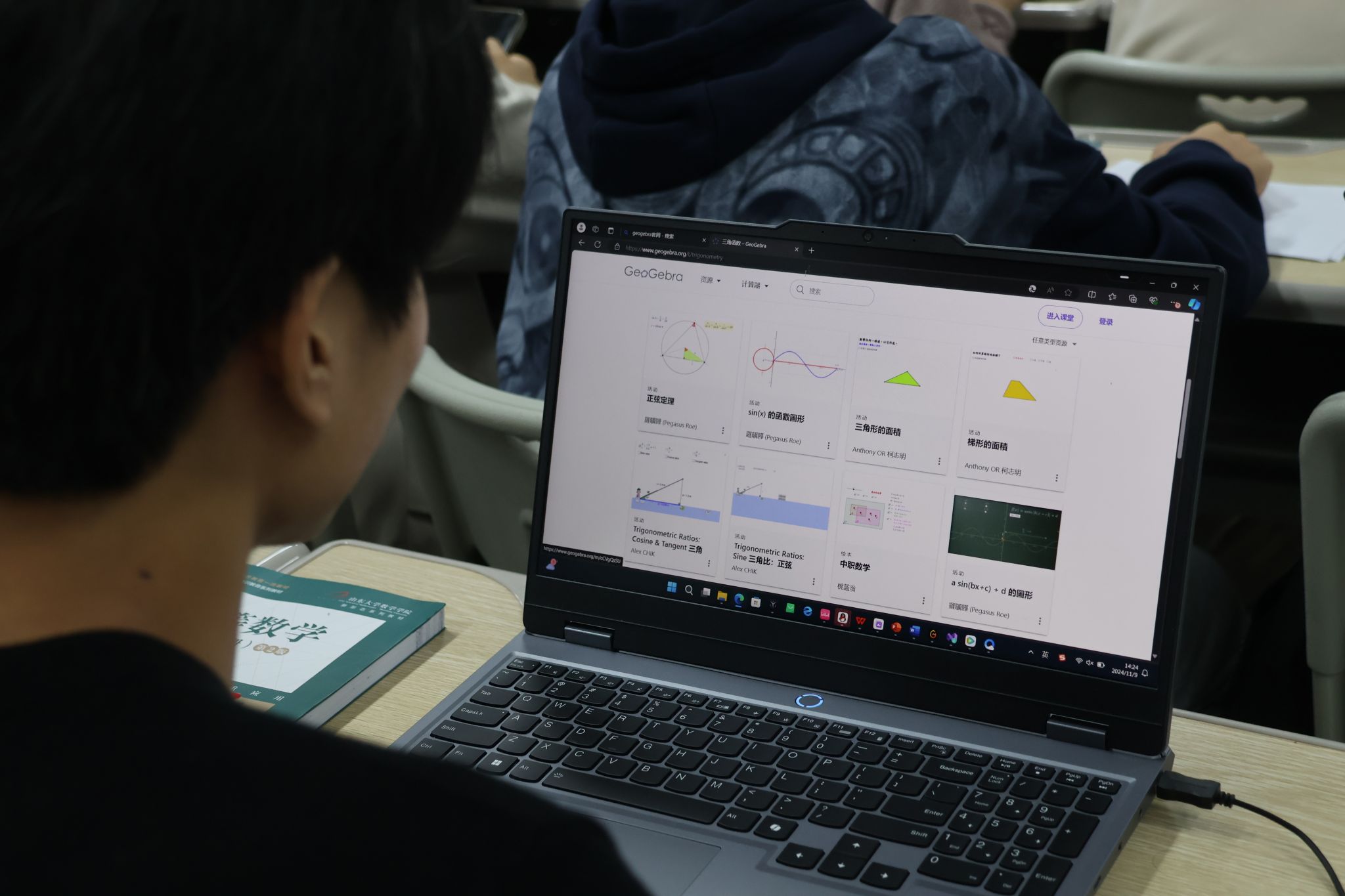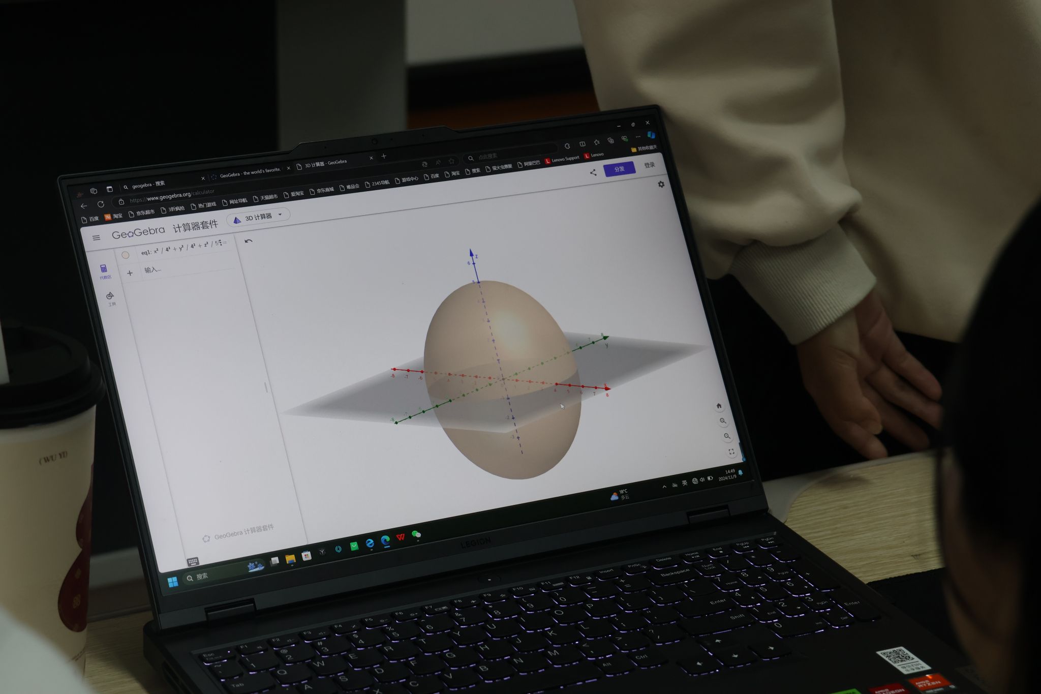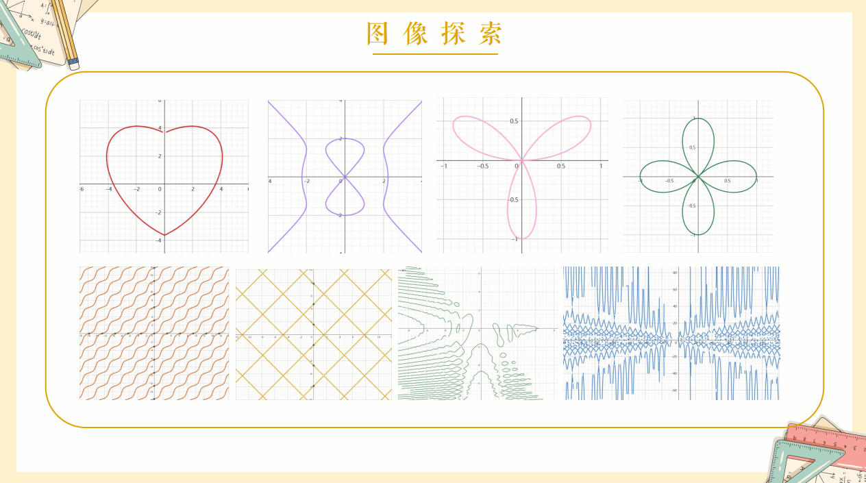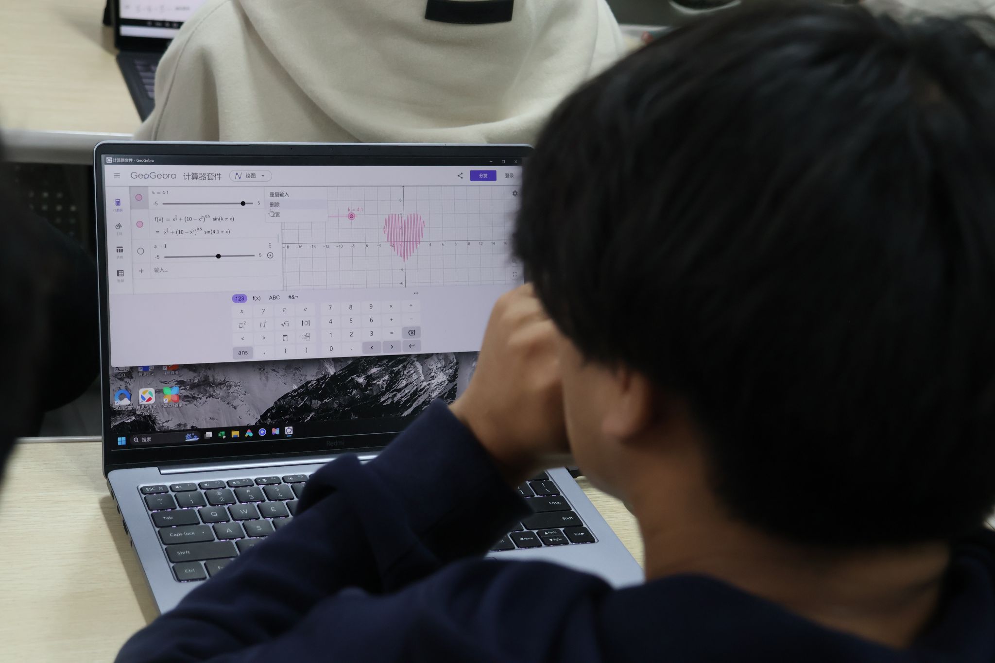 接着,活动进入了图像探索环节。曹老师将汇总的二元隐函数、极坐标系下的函数、二次曲面方程等内容发布在班级群,并展示了自己利用Geogebra工具绘制的隐函数图像,激发了学生们的浓厚兴趣。在老师的引导下,学生们分组合作,动手在电脑上操作实践,绘制各类隐函数图像。通过这种直观的动手探索,学生们逐步揭开了隐函数的“神秘面纱”,更深入地理解了这些复杂图像的生成规律和背后的数学结构。