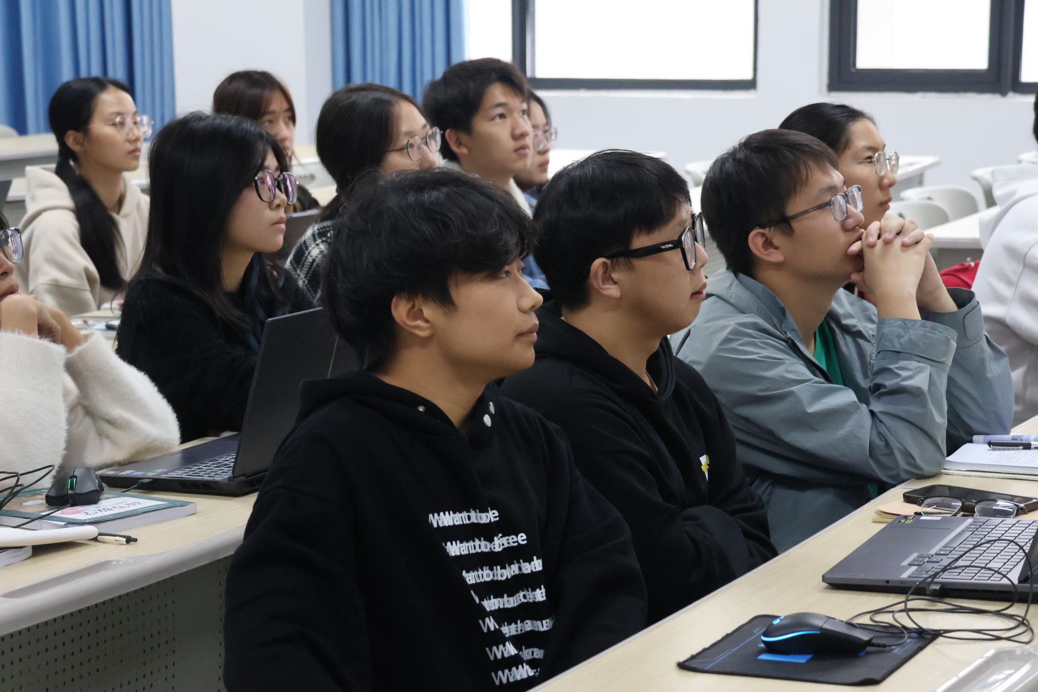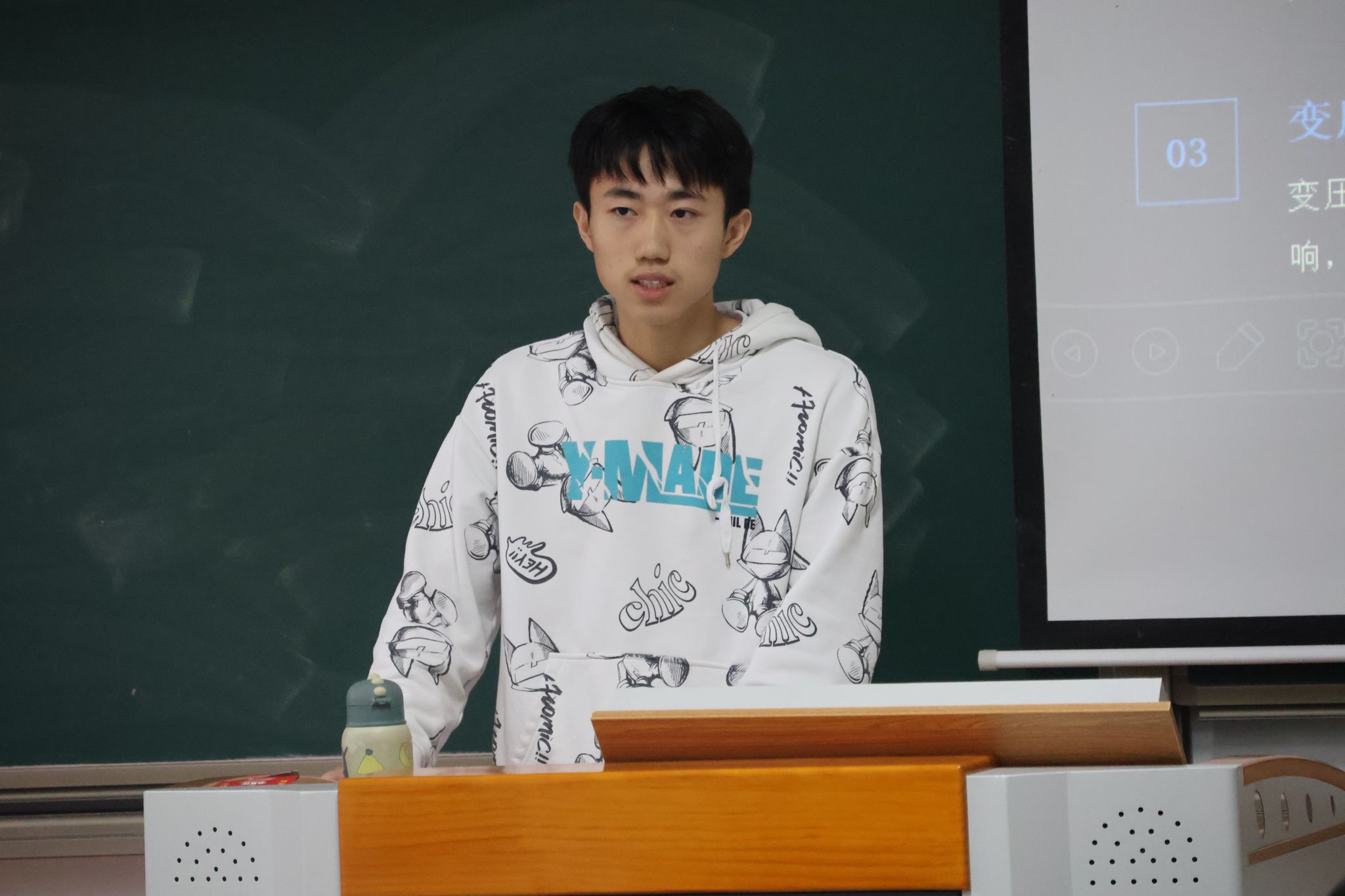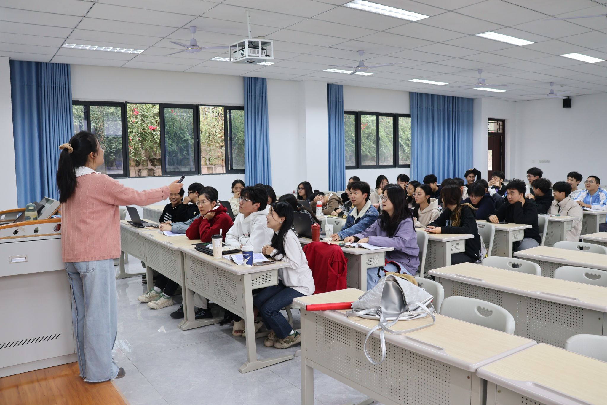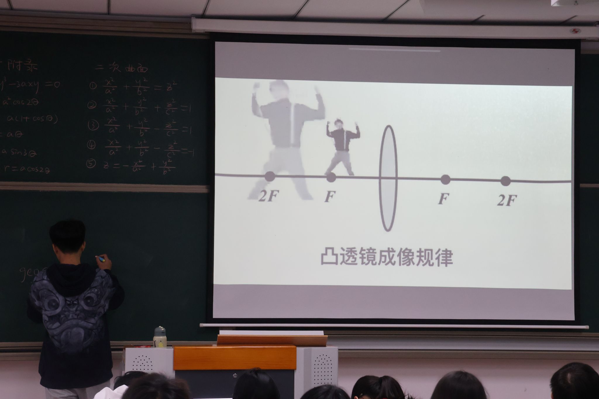 接下来,在课程思政环节,曹老师播放了一段与隐函数相关的视频,展示了二元和三元隐函数多姿多彩的图像;通过中国传统诗词“不识庐山真面目,只缘身在此山中”,讲述了“隐”的深厚文化内涵;并通过“小隐隐于野,中隐隐于市,大隐隐于朝”的历史典故,启发学生理解不同层次的“隐”与“忍”,引导他们思考国家在国际事务中的隐忍策略,同时也启迪学生在日常生活中如何做到“隐忍不争”。本环节在一场激烈的抢答活动中圆满结束,同学们踊跃参与,课堂气氛热烈活跃。