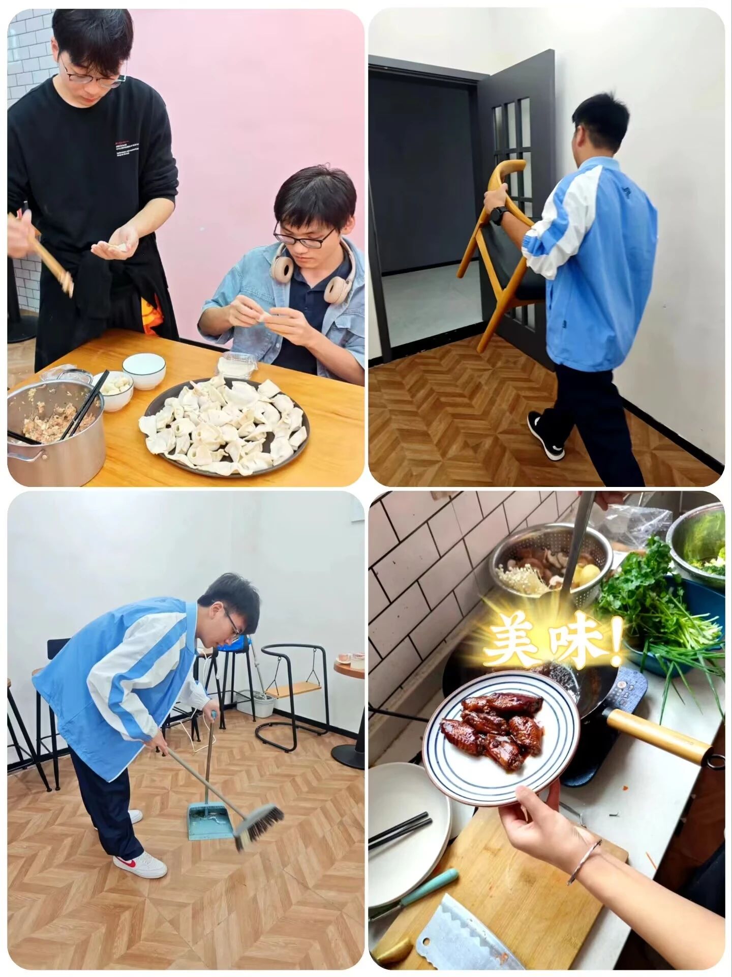 此外,还有几位同学身手不凡,化身为厨房中的“魔法师”,挥动锅铲间便展现了他们的厨艺才华。可乐鸡翅在火候的把握下色泽诱人,酥脆的外皮包裹着浓郁的甜香,受到了一致好评。而那道凉拌三丝,更是清爽可口,蔬菜的鲜脆与调料的恰到好处交织成一种清新的口感。美味的佳肴不仅满足了味蕾,更让每个人的心在这片刻的温暖与欢乐中彻底放松。
