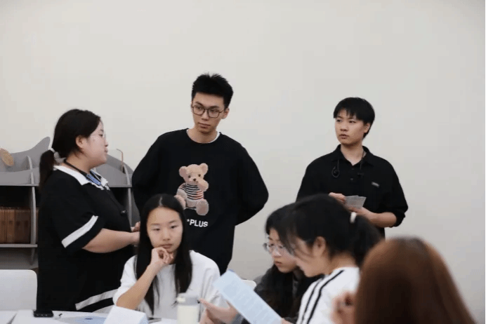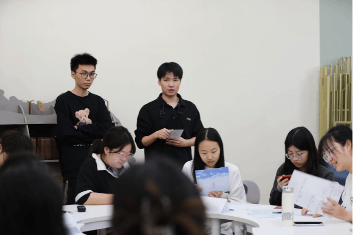 当天下午,学生们分成几个小组,各自扮演剧本中的不同角色。《月光下的持刀者》是一个充满悬疑色彩的故事,涉及复杂的法律与道德问题。同学们沉浸在搜集线索、分析证据、推理案情的过程中,这不仅锻炼了他们的逻辑思维能力,还增强了他们的推断能力。每个小组都积极投入,仔细审视每一个细节,力求找到案件的关键突破口。在刘达老师、别本鸿同学的引导下,学生们逐步揭开案件的真相。