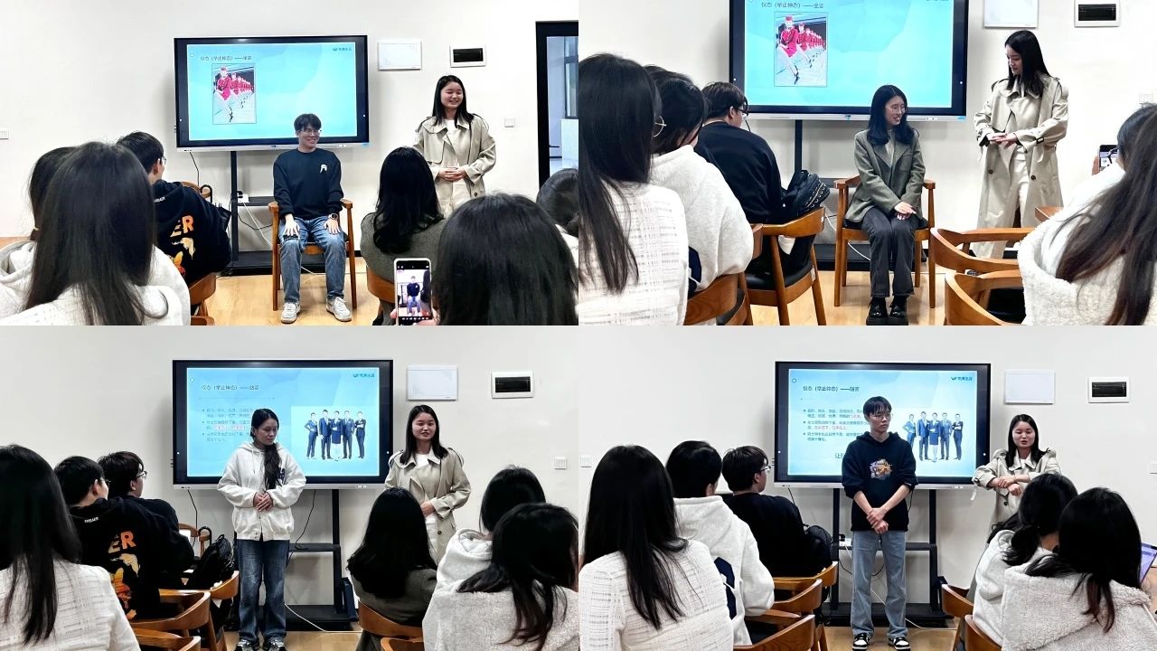 11月7日19:30-22:30,李佳老师针对职场礼仪和求职渠道展开了分享。依次讲述了职业形象、职场礼仪和求职策略等方面,结合典型案例,阐释了仪容仪表在求职面试过程中的重要性,包括电话礼仪、微信礼仪、餐宴礼仪的潜在规则,与人握手、递交名片和乘车礼仪中的正确规范。随机抽取同学上台展示,更有效地帮助大家掌握职场礼仪规范,提升职业技能和求职技巧,增强职业素养及就业核心竞争力,为有效实现高质量就业打下坚实基础。